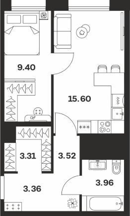 Общая площадь38,88 м²