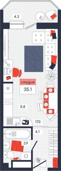 Продаётся студия в строящемся доме (Дом 20), срок сдачи: I-кв. 2026, общей площадью 35.1 кв.м., на 14 этаже. Расположение, транспортная доступность Новый жилой комплекс "Юго-Восточный" строится в Туле, в 3,5 км от центра города. Благодаря удачным транспортным развязкам, автолюбители смогут доехать до центральных кварталов примерно за 5 10 минут, составив наиболее быстрый и удобный маршрут с учетом загруженности дорог. Проблем с мобильностью не возникнет и у пассажиров общественного транспорта. Рядом с домом расположены остановки автобусов и маршрутных такси, которые быстро довезут до любого района города. Так, чтобы добраться до центра, следует дойти пешком до остановки "Медтехника", где останавливается маршрутное такси, доезжающее до центральных кварталов всего за 7 8 минут. Инфраструктура Район, где возводится новый жилой комплекс, активно застраивается, и сеть инфраструктуры сов временем будет расширяться. Но и сейчас все, что нужно для комфортной жизни в городе, находится недалеко от жилого комплекса. В шаговой доступности расположены продуктовые магазины: "Виктория", "Овощи-фрукты", Магазин рыбы и мяса птицы, магазин мяса и колбас "У Максима", супермаркеты "Дикси", "Пятерочка", "SPAR". Неподалеку находится гипермаркет "Линия", крупный торговый центр, в котором расположены отделения банков, гипермаркет "Глобус", салон оптики, мебельный магазин "Столплит", зоомагазин "Четыре лапы" и пр. В соседнем здании находится строительный гипермаркет "Леруа Мерлен", за ним крупный магазин товаров для спорта, туризма и активного отдыха "Декатлон".Недалеко от жилого комплекса открыты кафе и рестораны: кофейня "Bonape", пиццерия "Культура", кафе "Вкуснов", кафе быстрого обслуживания "Rapido", ресторан "У фонтана" и пр.В районе есть аптеки, поликлиники, диагностические центры. В шаговой доступности от жилого комплекса расположено несколько детских садиков, в том числе, садик комбинированного вида "Алые паруса". Есть дошкольные отделения, входящие в состав образовательных центров, Центры развития ребенка. Поблизости расположены средние школы, в том числе, школа для детей с ОВЗ. Рядом с жилым комплексом находится Тульская Духовная Семинария и Суворовское училище. Надежность застройщик: достраивает объект ООО Ин-Групп.АрхитектураЖилой комплекс будет представлен 19 монолитно-кирпичными корпусами переменной этажности, выполненными в едином архитектурном стиле. При строительстве ЖК "Юго-Восточный" применяются современные материалы высокого качества, которые обеспечивают надежность домов и комфортный микроклимат в помещениях. Каждая секция оснащается современными лифтами. Помещения общего пользования отделываются экологичными материалами. Квартиры предлагаются однокомнатные (от 43,9 кв. м), двухкомнатные (от 45,8 кв. м), трехкомнатные (от 60,4 кв. м) и четырехкомнатные (от 87,2 кв. м), а также уютные студии (от 28,9 кв. м).На внутренней территории проводится комплексное благоустройство: озеленение, организация игровых площадок, мест для отдыха и занятий спортом,