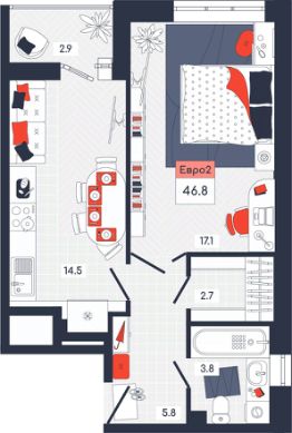 Продаётся 2-комнатная квартира в строящемся доме (Дом 20), срок сдачи: I-кв. 2026, общей площадью 46.8 кв.м., на 2 этаже. Расположение, транспортная доступность Новый жилой комплекс "Юго-Восточный" строится в Туле, в 3,5 км от центра города. Благодаря удачным транспортным развязкам, автолюбители смогут доехать до центральных кварталов примерно за 5 10 минут, составив наиболее быстрый и удобный маршрут с учетом загруженности дорог. Проблем с мобильностью не возникнет и у пассажиров общественного транспорта. Рядом с домом расположены остановки автобусов и маршрутных такси, которые быстро довезут до любого района города. Так, чтобы добраться до центра, следует дойти пешком до остановки "Медтехника", где останавливается маршрутное такси, доезжающее до центральных кварталов всего за 7 8 минут. Инфраструктура Район, где возводится новый жилой комплекс, активно застраивается, и сеть инфраструктуры сов временем будет расширяться. Но и сейчас все, что нужно для комфортной жизни в городе, находится недалеко от жилого комплекса. В шаговой доступности расположены продуктовые магазины: "Виктория", "Овощи-фрукты", Магазин рыбы и мяса птицы, магазин мяса и колбас "У Максима", супермаркеты "Дикси", "Пятерочка", "SPAR". Неподалеку находится гипермаркет "Линия", крупный торговый центр, в котором расположены отделения банков, гипермаркет "Глобус", салон оптики, мебельный магазин "Столплит", зоомагазин "Четыре лапы" и пр. В соседнем здании находится строительный гипермаркет "Леруа Мерлен", за ним крупный магазин товаров для спорта, туризма и активного отдыха "Декатлон".Недалеко от жилого комплекса открыты кафе и рестораны: кофейня "Bonape", пиццерия "Культура", кафе "Вкуснов", кафе быстрого обслуживания "Rapido", ресторан "У фонтана" и пр.В районе есть аптеки, поликлиники, диагностические центры. В шаговой доступности от жилого комплекса расположено несколько детских садиков, в том числе, садик комбинированного вида "Алые паруса". Есть дошкольные отделения, входящие в состав образовательных центров, Центры развития ребенка. Поблизости расположены средние школы, в том числе, школа для детей с ОВЗ. Рядом с жилым комплексом находится Тульская Духовная Семинария и Суворовское училище. Надежность застройщик: достраивает объект ООО Ин-Групп.АрхитектураЖилой комплекс будет представлен 19 монолитно-кирпичными корпусами переменной этажности, выполненными в едином архитектурном стиле. При строительстве ЖК "Юго-Восточный" применяются современные материалы высокого качества, которые обеспечивают надежность домов и комфортный микроклимат в помещениях. Каждая секция оснащается современными лифтами. Помещения общего пользования отделываются экологичными материалами. Квартиры предлагаются однокомнатные (от 43,9 кв. м), двухкомнатные (от 45,8 кв. м), трехкомнатные (от 60,4 кв. м) и четырехкомнатные (от 87,2 кв. м), а также уютные студии (от 28,9 кв. м).На внутренней территории проводится комплексное благоустройство: озеленение, организация игровых площадок, мест для отдыха и заня