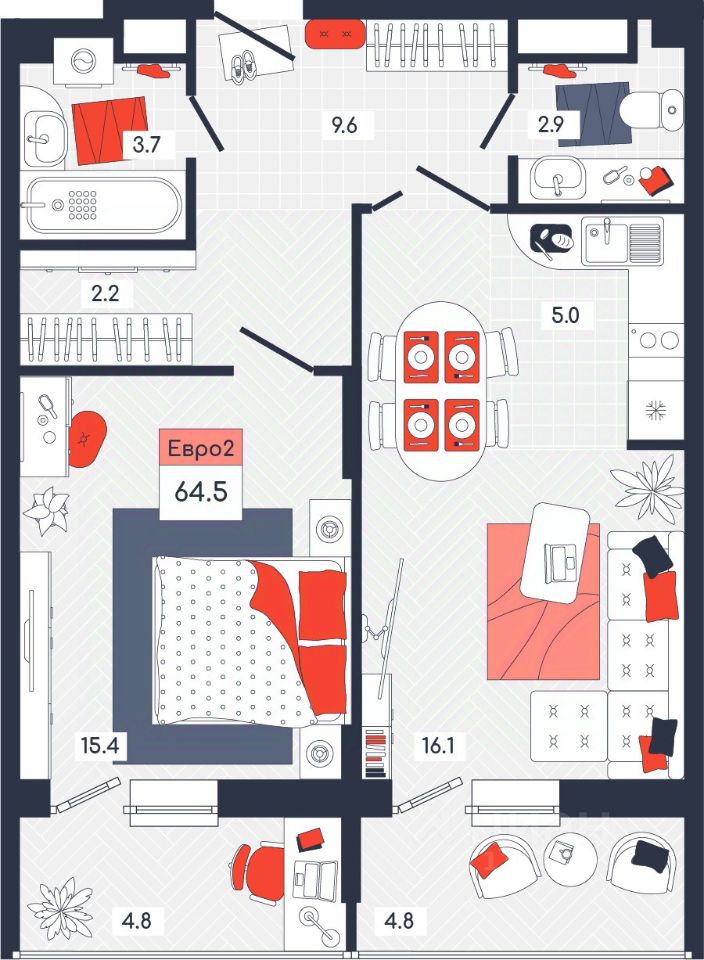 Продаётся 2-комнатная квартира в строящемся доме (Дом 20), срок сдачи: IV-кв. 2025, общей площадью 64.5 кв.м., на 11 этаже. Расположение, транспортная доступность Новый жилой комплекс "Юго-Восточный" строится в Туле, в 3,5 км от центра города. Благодаря удачным транспортным развязкам, автолюбители смогут доехать до центральных кварталов примерно за 5 10 минут, составив наиболее быстрый и удобный маршрут с учетом загруженности дорог. Проблем с мобильностью не возникнет и у пассажиров общественного транспорта. Рядом с домом расположены остановки автобусов и маршрутных такси, которые быстро довезут до любого района города. Так, чтобы добраться до центра, следует дойти пешком до остановки "Медтехника", где останавливается маршрутное такси, доезжающее до центральных кварталов всего за 7 8 минут. Инфраструктура Район, где возводится новый жилой комплекс, активно застраивается, и сеть инфраструктуры сов временем будет расширяться. Но и сейчас все, что нужно для комфортной жизни в городе, находится недалеко от жилого комплекса. В шаговой доступности расположены продуктовые магазины: "Виктория", "Овощи-фрукты", Магазин рыбы и мяса птицы, магазин мяса и колбас "У Максима", супермаркеты "Дикси", "Пятерочка", "SPAR". Неподалеку находится гипермаркет "Линия", крупный торговый центр, в котором расположены отделения банков, гипермаркет "Глобус", салон оптики, мебельный магазин "Столплит", зоомагазин "Четыре лапы" и пр. В соседнем здании находится строительный гипермаркет "Леруа Мерлен", за ним крупный магазин товаров для спорта, туризма и активного отдыха "Декатлон".Недалеко от жилого комплекса открыты кафе и рестораны: кофейня "Bonape", пиццерия "Культура", кафе "Вкуснов", кафе быстрого обслуживания "Rapido", ресторан "У фонтана" и пр.В районе есть аптеки, поликлиники, диагностические центры. В шаговой доступности от жилого комплекса расположено несколько детских садиков, в том числе, садик комбинированного вида "Алые паруса". Есть дошкольные отделения, входящие в состав образовательных центров, Центры развития ребенка. Поблизости расположены средние школы, в том числе, школа для детей с ОВЗ. Рядом с жилым комплексом находится Тульская Духовная Семинария и Суворовское училище. Надежность застройщик: достраивает объект ООО Ин-Групп.АрхитектураЖилой комплекс будет представлен 19 монолитно-кирпичными корпусами переменной этажности, выполненными в едином архитектурном стиле. При строительстве ЖК "Юго-Восточный" применяются современные материалы высокого качества, которые обеспечивают надежность домов и комфортный микроклимат в помещениях. Каждая секция оснащается современными лифтами. Помещения общего пользования отделываются экологичными материалами. Квартиры предлагаются однокомнатные (от 43,9 кв. м), двухкомнатные (от 45,8 кв. м), трехкомнатные (от 60,4 кв. м) и четырехкомнатные (от 87,2 кв. м), а также уютные студии (от 28,9 кв. м).На внутренней территории проводится комплексное благоустройство: озеленение, организация игровых площадок, мест для отдыха и за