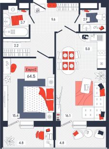 Продаётся 2-комнатная квартира в строящемся доме (Дом 20), срок сдачи: IV-кв. 2025, общей площадью 64.5 кв.м., на 3 этаже. Расположение, транспортная доступность Новый жилой комплекс "Юго-Восточный" строится в Туле, в 3,5 км от центра города. Благодаря удачным транспортным развязкам, автолюбители смогут доехать до центральных кварталов примерно за 5 10 минут, составив наиболее быстрый и удобный маршрут с учетом загруженности дорог. Проблем с мобильностью не возникнет и у пассажиров общественного транспорта. Рядом с домом расположены остановки автобусов и маршрутных такси, которые быстро довезут до любого района города. Так, чтобы добраться до центра, следует дойти пешком до остановки "Медтехника", где останавливается маршрутное такси, доезжающее до центральных кварталов всего за 7 8 минут. Инфраструктура Район, где возводится новый жилой комплекс, активно застраивается, и сеть инфраструктуры сов временем будет расширяться. Но и сейчас все, что нужно для комфортной жизни в городе, находится недалеко от жилого комплекса. В шаговой доступности расположены продуктовые магазины: "Виктория", "Овощи-фрукты", Магазин рыбы и мяса птицы, магазин мяса и колбас "У Максима", супермаркеты "Дикси", "Пятерочка", "SPAR". Неподалеку находится гипермаркет "Линия", крупный торговый центр, в котором расположены отделения банков, гипермаркет "Глобус", салон оптики, мебельный магазин "Столплит", зоомагазин "Четыре лапы" и пр. В соседнем здании находится строительный гипермаркет "Леруа Мерлен", за ним крупный магазин товаров для спорта, туризма и активного отдыха "Декатлон".Недалеко от жилого комплекса открыты кафе и рестораны: кофейня "Bonape", пиццерия "Культура", кафе "Вкуснов", кафе быстрого обслуживания "Rapido", ресторан "У фонтана" и пр.В районе есть аптеки, поликлиники, диагностические центры. В шаговой доступности от жилого комплекса расположено несколько детских садиков, в том числе, садик комбинированного вида "Алые паруса". Есть дошкольные отделения, входящие в состав образовательных центров, Центры развития ребенка. Поблизости расположены средние школы, в том числе, школа для детей с ОВЗ. Рядом с жилым комплексом находится Тульская Духовная Семинария и Суворовское училище. Надежность застройщик: достраивает объект ООО Ин-Групп.АрхитектураЖилой комплекс будет представлен 19 монолитно-кирпичными корпусами переменной этажности, выполненными в едином архитектурном стиле. При строительстве ЖК "Юго-Восточный" применяются современные материалы высокого качества, которые обеспечивают надежность домов и комфортный микроклимат в помещениях. Каждая секция оснащается современными лифтами. Помещения общего пользования отделываются экологичными материалами. Квартиры предлагаются однокомнатные (от 43,9 кв. м), двухкомнатные (от 45,8 кв. м), трехкомнатные (от 60,4 кв. м) и четырехкомнатные (от 87,2 кв. м), а также уютные студии (от 28,9 кв. м).На внутренней территории проводится комплексное благоустройство: озеленение, организация игровых площадок, мест для отдыха и зан