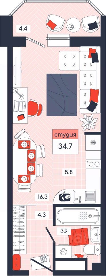 Продаётся студия в строящемся доме (Дом 20), срок сдачи: IV-кв. 2025, общей площадью 34.7 кв.м., на 13 этаже. Расположение, транспортная доступность Новый жилой комплекс "Юго-Восточный" строится в Туле, в 3,5 км от центра города. Благодаря удачным транспортным развязкам, автолюбители смогут доехать до центральных кварталов примерно за 5 10 минут, составив наиболее быстрый и удобный маршрут с учетом загруженности дорог. Проблем с мобильностью не возникнет и у пассажиров общественного транспорта. Рядом с домом расположены остановки автобусов и маршрутных такси, которые быстро довезут до любого района города. Так, чтобы добраться до центра, следует дойти пешком до остановки "Медтехника", где останавливается маршрутное такси, доезжающее до центральных кварталов всего за 7 8 минут. Инфраструктура Район, где возводится новый жилой комплекс, активно застраивается, и сеть инфраструктуры сов временем будет расширяться. Но и сейчас все, что нужно для комфортной жизни в городе, находится недалеко от жилого комплекса. В шаговой доступности расположены продуктовые магазины: "Виктория", "Овощи-фрукты", Магазин рыбы и мяса птицы, магазин мяса и колбас "У Максима", супермаркеты "Дикси", "Пятерочка", "SPAR". Неподалеку находится гипермаркет "Линия", крупный торговый центр, в котором расположены отделения банков, гипермаркет "Глобус", салон оптики, мебельный магазин "Столплит", зоомагазин "Четыре лапы" и пр. В соседнем здании находится строительный гипермаркет "Леруа Мерлен", за ним крупный магазин товаров для спорта, туризма и активного отдыха "Декатлон".Недалеко от жилого комплекса открыты кафе и рестораны: кофейня "Bonape", пиццерия "Культура", кафе "Вкуснов", кафе быстрого обслуживания "Rapido", ресторан "У фонтана" и пр.В районе есть аптеки, поликлиники, диагностические центры. В шаговой доступности от жилого комплекса расположено несколько детских садиков, в том числе, садик комбинированного вида "Алые паруса". Есть дошкольные отделения, входящие в состав образовательных центров, Центры развития ребенка. Поблизости расположены средние школы, в том числе, школа для детей с ОВЗ. Рядом с жилым комплексом находится Тульская Духовная Семинария и Суворовское училище. Надежность застройщик: достраивает объект ООО Ин-Групп.АрхитектураЖилой комплекс будет представлен 19 монолитно-кирпичными корпусами переменной этажности, выполненными в едином архитектурном стиле. При строительстве ЖК "Юго-Восточный" применяются современные материалы высокого качества, которые обеспечивают надежность домов и комфортный микроклимат в помещениях. Каждая секция оснащается современными лифтами. Помещения общего пользования отделываются экологичными материалами. Квартиры предлагаются однокомнатные (от 43,9 кв. м), двухкомнатные (от 45,8 кв. м), трехкомнатные (от 60,4 кв. м) и четырехкомнатные (от 87,2 кв. м), а также уютные студии (от 28,9 кв. м).На внутренней территории проводится комплексное благоустройство: озеленение, организация игровых площадок, мест для отдыха и занятий спортом,