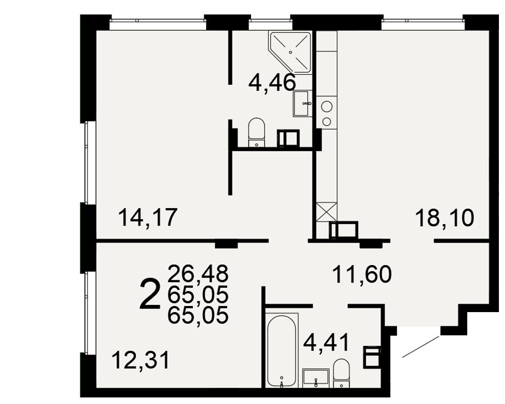 Общая площадь65,05 м²