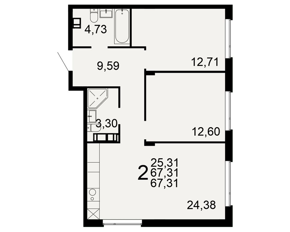 Общая площадь67,31 м²