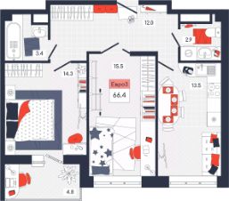Общая площадь66,4 м²