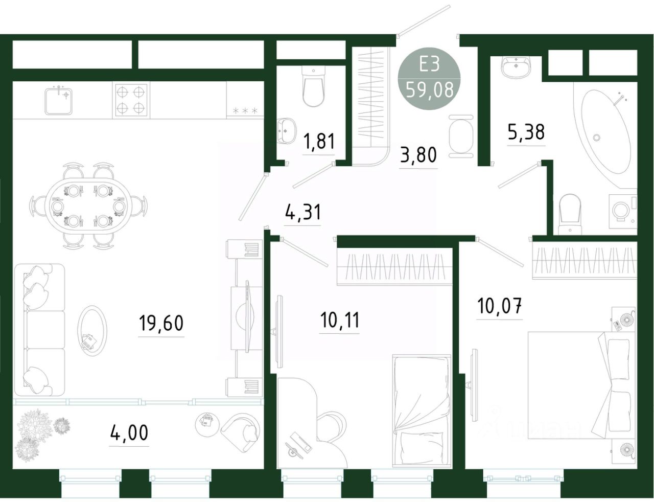 Продаётся 2-комнатная квартира в строящемся доме (Позиция 1), срок сдачи: III-кв. 2029, общей площадью 60.28 кв.м., на 4 этаже. Новый жилой комплекс в г. Тула "Платон Парк" от застройщика ООО "СЗ "МОНОЛИТ""