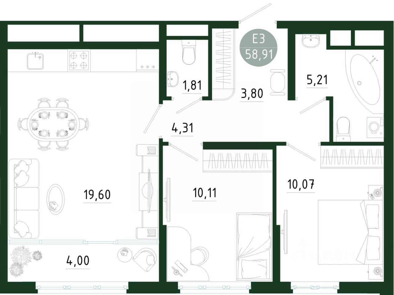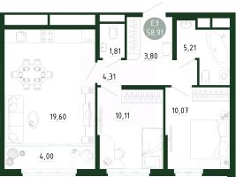 Продаётся 2-комнатная квартира в строящемся доме (Позиция 1), срок сдачи: III-кв. 2029, общей площадью 60.28 кв.м., на 16 этаже. Новый жилой комплекс в г. Тула "Платон Парк" от застройщика ООО "СЗ "МОНОЛИТ""