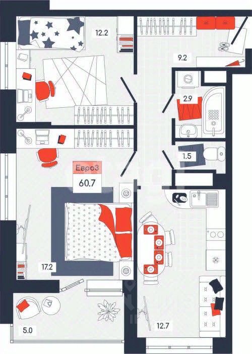 Квартира обладает удачной планировкой: просторная кухня-гостиная, две изолированные спальни и раздельный санузел создают атмосферу уюта и функциональности. Забудьте о пробках на Оборонной и Восточном обводе — здесь вы сможете добраться до Кремля всего за 10 минут на машине!