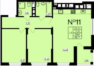 Продаётся 2-комнатная квартира в строящемся доме (Строение 1), срок сдачи: IV-кв. 2025, общей площадью 79.84 кв.м., на 3 этаже. Новый жилой комплекс "Традиции" от застройщика "Совдел-Строй".