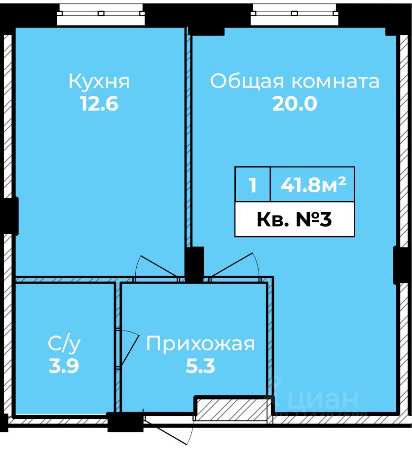 Продаётся 1-комнатная квартира в сданном доме (Дом 3 (1 очередь)), срок сдачи: I-кв. 2025, общей площадью 42.8 кв.м., на 1 этаже.