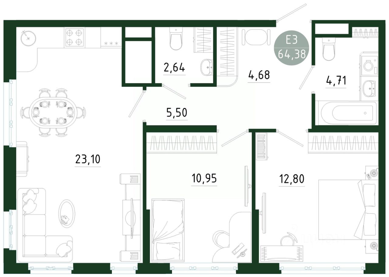 Продаётся 2-комнатная квартира в строящемся доме (Позиция 1), срок сдачи: III-кв. 2029, общей площадью 64.25 кв.м., на 13 этаже. Новый жилой комплекс в г. Тула "Платон Парк" от застройщика ООО "СЗ "МОНОЛИТ""