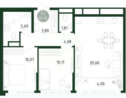 Продаётся 2-комнатная квартира в строящемся доме (Позиция 2), срок сдачи: III-кв. 2029, общей площадью 60.6 кв.м., на 7 этаже. Новый жилой комплекс в г. Тула "Платон Парк" от застройщика ООО "СЗ "МОНОЛИТ""