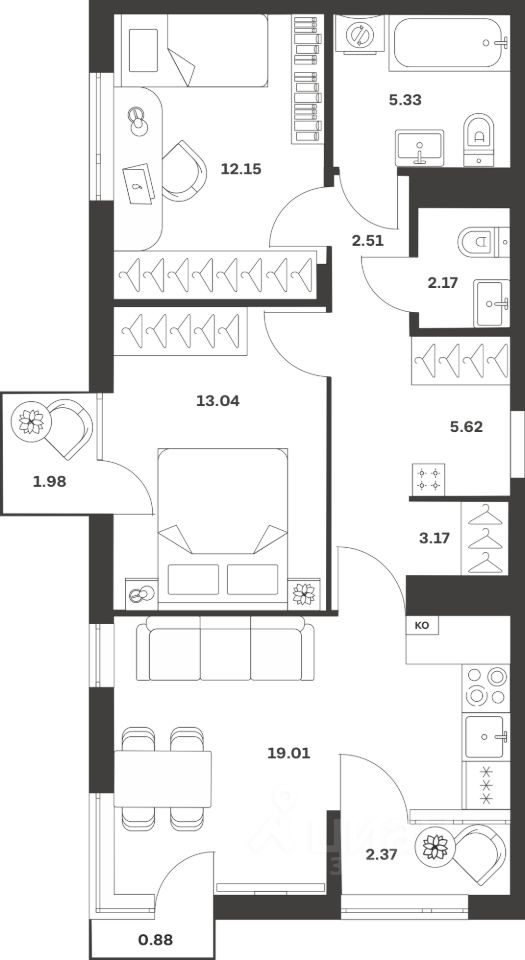 Продается 2-комн. квартира, 68,23 м²