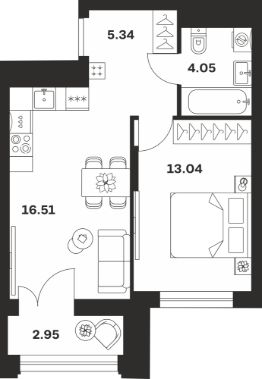 Продается 1-комн. квартира, 41,89 м²