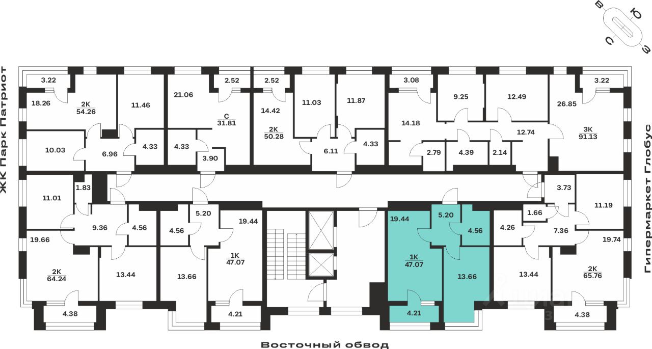 Общая площадь47,07 м²