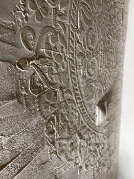 Стены отделаны рельефной штукатуркой и окрашены в белый цвет.