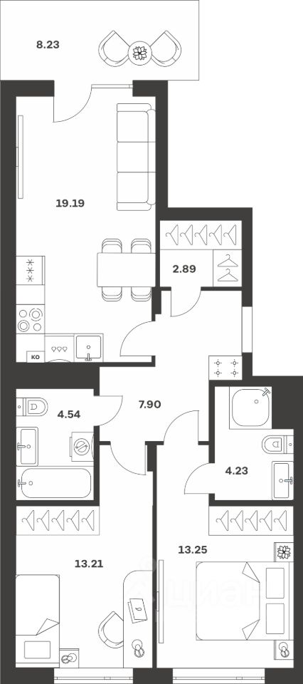Общая площадь67,68 м²