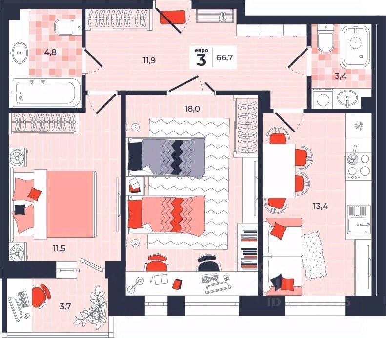 Продаётся 3-комнатная квартира в строящемся доме (Дом 30), срок сдачи: IV-кв. 2026, общей площадью 66.7 кв.м., на 2 этаже. Расположение, транспортная доступность Новый жилой комплекс "Юго-Восточный" строится в Туле, в 3,5 км от центра города. Благодаря удачным транспортным развязкам, автолюбители смогут доехать до центральных кварталов примерно за 5 10 минут, составив наиболее быстрый и удобный маршрут с учетом загруженности дорог. Проблем с мобильностью не возникнет и у пассажиров общественного транспорта. Рядом с домом расположены остановки автобусов и маршрутных такси, которые быстро довезут до любого района города. Так, чтобы добраться до центра, следует дойти пешком до остановки "Медтехника", где останавливается маршрутное такси, доезжающее до центральных кварталов всего за 7 8 минут. Инфраструктура Район, где возводится новый жилой комплекс, активно застраивается, и сеть инфраструктуры сов временем будет расширяться. Но и сейчас все, что нужно для комфортной жизни в городе, находится недалеко от жилого комплекса. В шаговой доступности расположены продуктовые магазины: "Виктория", "Овощи-фрукты", Магазин рыбы и мяса птицы, магазин мяса и колбас "У Максима", супермаркеты "Дикси", "Пятерочка", "SPAR". Неподалеку находится гипермаркет "Линия", крупный торговый центр, в котором расположены отделения банков, гипермаркет "Глобус", салон оптики, мебельный магазин "Столплит", зоомагазин "Четыре лапы" и пр. В соседнем здании находится строительный гипермаркет "Леруа Мерлен", за ним крупный магазин товаров для спорта, туризма и активного отдыха "Декатлон".Недалеко от жилого комплекса открыты кафе и рестораны: кофейня "Bonape", пиццерия "Культура", кафе "Вкуснов", кафе быстрого обслуживания "Rapido", ресторан "У фонтана" и пр.В районе есть аптеки, поликлиники, диагностические центры. В шаговой доступности от жилого комплекса расположено несколько детских садиков, в том числе, садик комбинированного вида "Алые паруса". Есть дошкольные отделения, входящие в состав образовательных центров, Центры развития ребенка. Поблизости расположены средние школы, в том числе, школа для детей с ОВЗ. Рядом с жилым комплексом находится Тульская Духовная Семинария и Суворовское училище. Надежность застройщик: достраивает объект ООО Ин-Групп.АрхитектураЖилой комплекс будет представлен 19 монолитно-кирпичными корпусами переменной этажности, выполненными в едином архитектурном стиле. При строительстве ЖК "Юго-Восточный" применяются современные материалы высокого качества, которые обеспечивают надежность домов и комфортный микроклимат в помещениях. Каждая секция оснащается современными лифтами. Помещения общего пользования отделываются экологичными материалами. Квартиры предлагаются однокомнатные (от 43,9 кв. м), двухкомнатные (от 45,8 кв. м), трехкомнатные (от 60,4 кв. м) и четырехкомнатные (от 87,2 кв. м), а также уютные студии (от 28,9 кв. м).На внутренней территории проводится комплексное благоустройство: озеленение, организация игровых площадок, мест для отдыха и зан