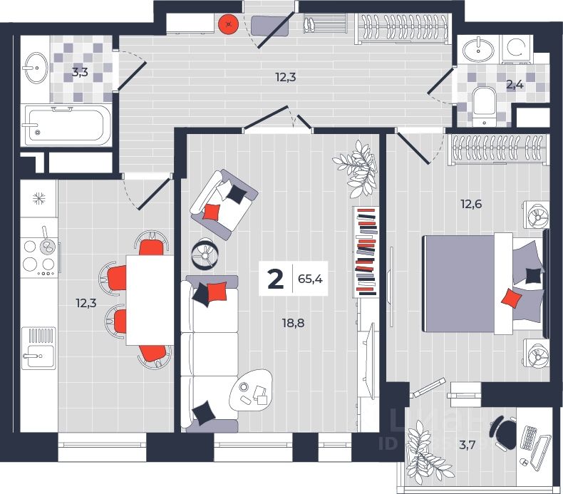 Продаётся 2-комнатная квартира в строящемся доме (Дом 30), срок сдачи: IV-кв. 2026, общей площадью 65.4 кв.м., на 12 этаже. Расположение, транспортная доступность Новый жилой комплекс "Юго-Восточный" строится в Туле, в 3,5 км от центра города. Благодаря удачным транспортным развязкам, автолюбители смогут доехать до центральных кварталов примерно за 5 10 минут, составив наиболее быстрый и удобный маршрут с учетом загруженности дорог. Проблем с мобильностью не возникнет и у пассажиров общественного транспорта. Рядом с домом расположены остановки автобусов и маршрутных такси, которые быстро довезут до любого района города. Так, чтобы добраться до центра, следует дойти пешком до остановки "Медтехника", где останавливается маршрутное такси, доезжающее до центральных кварталов всего за 7 8 минут. Инфраструктура Район, где возводится новый жилой комплекс, активно застраивается, и сеть инфраструктуры сов временем будет расширяться. Но и сейчас все, что нужно для комфортной жизни в городе, находится недалеко от жилого комплекса. В шаговой доступности расположены продуктовые магазины: "Виктория", "Овощи-фрукты", Магазин рыбы и мяса птицы, магазин мяса и колбас "У Максима", супермаркеты "Дикси", "Пятерочка", "SPAR". Неподалеку находится гипермаркет "Линия", крупный торговый центр, в котором расположены отделения банков, гипермаркет "Глобус", салон оптики, мебельный магазин "Столплит", зоомагазин "Четыре лапы" и пр. В соседнем здании находится строительный гипермаркет "Леруа Мерлен", за ним крупный магазин товаров для спорта, туризма и активного отдыха "Декатлон".Недалеко от жилого комплекса открыты кафе и рестораны: кофейня "Bonape", пиццерия "Культура", кафе "Вкуснов", кафе быстрого обслуживания "Rapido", ресторан "У фонтана" и пр.В районе есть аптеки, поликлиники, диагностические центры. В шаговой доступности от жилого комплекса расположено несколько детских садиков, в том числе, садик комбинированного вида "Алые паруса". Есть дошкольные отделения, входящие в состав образовательных центров, Центры развития ребенка. Поблизости расположены средние школы, в том числе, школа для детей с ОВЗ. Рядом с жилым комплексом находится Тульская Духовная Семинария и Суворовское училище. Надежность застройщик: достраивает объект ООО Ин-Групп.АрхитектураЖилой комплекс будет представлен 19 монолитно-кирпичными корпусами переменной этажности, выполненными в едином архитектурном стиле. При строительстве ЖК "Юго-Восточный" применяются современные материалы высокого качества, которые обеспечивают надежность домов и комфортный микроклимат в помещениях. Каждая секция оснащается современными лифтами. Помещения общего пользования отделываются экологичными материалами. Квартиры предлагаются однокомнатные (от 43,9 кв. м), двухкомнатные (от 45,8 кв. м), трехкомнатные (от 60,4 кв. м) и четырехкомнатные (от 87,2 кв. м), а также уютные студии (от 28,9 кв. м).На внутренней территории проводится комплексное благоустройство: озеленение, организация игровых площадок, мест для отдыха и за
