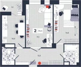 Продаётся 2-комнатная квартира в строящемся доме (Дом 30), срок сдачи: IV-кв. 2026, общей площадью 64.4 кв.м., на 14 этаже. Расположение, транспортная доступность Новый жилой комплекс "Юго-Восточный" строится в Туле, в 3,5 км от центра города. Благодаря удачным транспортным развязкам, автолюбители смогут доехать до центральных кварталов примерно за 5 10 минут, составив наиболее быстрый и удобный маршрут с учетом загруженности дорог. Проблем с мобильностью не возникнет и у пассажиров общественного транспорта. Рядом с домом расположены остановки автобусов и маршрутных такси, которые быстро довезут до любого района города. Так, чтобы добраться до центра, следует дойти пешком до остановки "Медтехника", где останавливается маршрутное такси, доезжающее до центральных кварталов всего за 7 8 минут. Инфраструктура Район, где возводится новый жилой комплекс, активно застраивается, и сеть инфраструктуры сов временем будет расширяться. Но и сейчас все, что нужно для комфортной жизни в городе, находится недалеко от жилого комплекса. В шаговой доступности расположены продуктовые магазины: "Виктория", "Овощи-фрукты", Магазин рыбы и мяса птицы, магазин мяса и колбас "У Максима", супермаркеты "Дикси", "Пятерочка", "SPAR". Неподалеку находится гипермаркет "Линия", крупный торговый центр, в котором расположены отделения банков, гипермаркет "Глобус", салон оптики, мебельный магазин "Столплит", зоомагазин "Четыре лапы" и пр. В соседнем здании находится строительный гипермаркет "Леруа Мерлен", за ним крупный магазин товаров для спорта, туризма и активного отдыха "Декатлон".Недалеко от жилого комплекса открыты кафе и рестораны: кофейня "Bonape", пиццерия "Культура", кафе "Вкуснов", кафе быстрого обслуживания "Rapido", ресторан "У фонтана" и пр.В районе есть аптеки, поликлиники, диагностические центры. В шаговой доступности от жилого комплекса расположено несколько детских садиков, в том числе, садик комбинированного вида "Алые паруса". Есть дошкольные отделения, входящие в состав образовательных центров, Центры развития ребенка. Поблизости расположены средние школы, в том числе, школа для детей с ОВЗ. Рядом с жилым комплексом находится Тульская Духовная Семинария и Суворовское училище. Надежность застройщик: достраивает объект ООО Ин-Групп.АрхитектураЖилой комплекс будет представлен 19 монолитно-кирпичными корпусами переменной этажности, выполненными в едином архитектурном стиле. При строительстве ЖК "Юго-Восточный" применяются современные материалы высокого качества, которые обеспечивают надежность домов и комфортный микроклимат в помещениях. Каждая секция оснащается современными лифтами. Помещения общего пользования отделываются экологичными материалами. Квартиры предлагаются однокомнатные (от 43,9 кв. м), двухкомнатные (от 45,8 кв. м), трехкомнатные (от 60,4 кв. м) и четырехкомнатные (от 87,2 кв. м), а также уютные студии (от 28,9 кв. м).На внутренней территории проводится комплексное благоустройство: озеленение, организация игровых площадок, мест для отдыха и за
