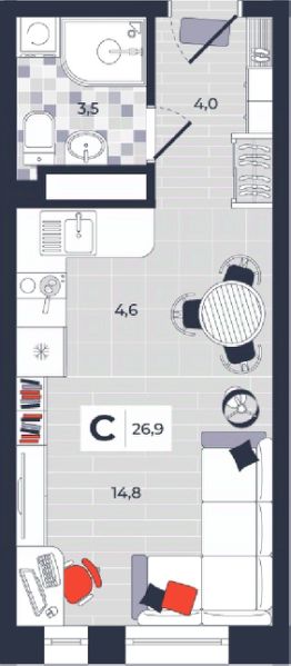 Продаётся студия в строящемся доме (Дом 30), срок сдачи: IV-кв. 2026, общей площадью 26.9 кв.м., на 12 этаже. Расположение, транспортная доступность Новый жилой комплекс "Юго-Восточный" строится в Туле, в 3,5 км от центра города. Благодаря удачным транспортным развязкам, автолюбители смогут доехать до центральных кварталов примерно за 5 10 минут, составив наиболее быстрый и удобный маршрут с учетом загруженности дорог. Проблем с мобильностью не возникнет и у пассажиров общественного транспорта. Рядом с домом расположены остановки автобусов и маршрутных такси, которые быстро довезут до любого района города. Так, чтобы добраться до центра, следует дойти пешком до остановки "Медтехника", где останавливается маршрутное такси, доезжающее до центральных кварталов всего за 7 8 минут. Инфраструктура Район, где возводится новый жилой комплекс, активно застраивается, и сеть инфраструктуры сов временем будет расширяться. Но и сейчас все, что нужно для комфортной жизни в городе, находится недалеко от жилого комплекса. В шаговой доступности расположены продуктовые магазины: "Виктория", "Овощи-фрукты", Магазин рыбы и мяса птицы, магазин мяса и колбас "У Максима", супермаркеты "Дикси", "Пятерочка", "SPAR". Неподалеку находится гипермаркет "Линия", крупный торговый центр, в котором расположены отделения банков, гипермаркет "Глобус", салон оптики, мебельный магазин "Столплит", зоомагазин "Четыре лапы" и пр. В соседнем здании находится строительный гипермаркет "Леруа Мерлен", за ним крупный магазин товаров для спорта, туризма и активного отдыха "Декатлон".Недалеко от жилого комплекса открыты кафе и рестораны: кофейня "Bonape", пиццерия "Культура", кафе "Вкуснов", кафе быстрого обслуживания "Rapido", ресторан "У фонтана" и пр.В районе есть аптеки, поликлиники, диагностические центры. В шаговой доступности от жилого комплекса расположено несколько детских садиков, в том числе, садик комбинированного вида "Алые паруса". Есть дошкольные отделения, входящие в состав образовательных центров, Центры развития ребенка. Поблизости расположены средние школы, в том числе, школа для детей с ОВЗ. Рядом с жилым комплексом находится Тульская Духовная Семинария и Суворовское училище. Надежность застройщик: достраивает объект ООО Ин-Групп.АрхитектураЖилой комплекс будет представлен 19 монолитно-кирпичными корпусами переменной этажности, выполненными в едином архитектурном стиле. При строительстве ЖК "Юго-Восточный" применяются современные материалы высокого качества, которые обеспечивают надежность домов и комфортный микроклимат в помещениях. Каждая секция оснащается современными лифтами. Помещения общего пользования отделываются экологичными материалами. Квартиры предлагаются однокомнатные (от 43,9 кв. м), двухкомнатные (от 45,8 кв. м), трехкомнатные (от 60,4 кв. м) и четырехкомнатные (от 87,2 кв. м), а также уютные студии (от 28,9 кв. м).На внутренней территории проводится комплексное благоустройство: озеленение, организация игровых площадок, мест для отдыха и занятий спортом,