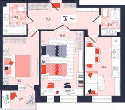 Продаётся 3-комнатная квартира в строящемся доме (Дом 30), срок сдачи: IV-кв. 2026, общей площадью 66.7 кв.м., на 2 этаже. Расположение, транспортная доступность Новый жилой комплекс "Юго-Восточный" строится в Туле, в 3,5 км от центра города. Благодаря удачным транспортным развязкам, автолюбители смогут доехать до центральных кварталов примерно за 5 10 минут, составив наиболее быстрый и удобный маршрут с учетом загруженности дорог. Проблем с мобильностью не возникнет и у пассажиров общественного транспорта. Рядом с домом расположены остановки автобусов и маршрутных такси, которые быстро довезут до любого района города. Так, чтобы добраться до центра, следует дойти пешком до остановки "Медтехника", где останавливается маршрутное такси, доезжающее до центральных кварталов всего за 7 8 минут. Инфраструктура Район, где возводится новый жилой комплекс, активно застраивается, и сеть инфраструктуры сов временем будет расширяться. Но и сейчас все, что нужно для комфортной жизни в городе, находится недалеко от жилого комплекса. В шаговой доступности расположены продуктовые магазины: "Виктория", "Овощи-фрукты", Магазин рыбы и мяса птицы, магазин мяса и колбас "У Максима", супермаркеты "Дикси", "Пятерочка", "SPAR". Неподалеку находится гипермаркет "Линия", крупный торговый центр, в котором расположены отделения банков, гипермаркет "Глобус", салон оптики, мебельный магазин "Столплит", зоомагазин "Четыре лапы" и пр. В соседнем здании находится строительный гипермаркет "Леруа Мерлен", за ним крупный магазин товаров для спорта, туризма и активного отдыха "Декатлон".Недалеко от жилого комплекса открыты кафе и рестораны: кофейня "Bonape", пиццерия "Культура", кафе "Вкуснов", кафе быстрого обслуживания "Rapido", ресторан "У фонтана" и пр.В районе есть аптеки, поликлиники, диагностические центры. В шаговой доступности от жилого комплекса расположено несколько детских садиков, в том числе, садик комбинированного вида "Алые паруса". Есть дошкольные отделения, входящие в состав образовательных центров, Центры развития ребенка. Поблизости расположены средние школы, в том числе, школа для детей с ОВЗ. Рядом с жилым комплексом находится Тульская Духовная Семинария и Суворовское училище. Надежность застройщик: достраивает объект ООО Ин-Групп.АрхитектураЖилой комплекс будет представлен 19 монолитно-кирпичными корпусами переменной этажности, выполненными в едином архитектурном стиле. При строительстве ЖК "Юго-Восточный" применяются современные материалы высокого качества, которые обеспечивают надежность домов и комфортный микроклимат в помещениях. Каждая секция оснащается современными лифтами. Помещения общего пользования отделываются экологичными материалами. Квартиры предлагаются однокомнатные (от 43,9 кв. м), двухкомнатные (от 45,8 кв. м), трехкомнатные (от 60,4 кв. м) и четырехкомнатные (от 87,2 кв. м), а также уютные студии (от 28,9 кв. м).На внутренней территории проводится комплексное благоустройство: озеленение, организация игровых площадок, мест для отдыха и зан