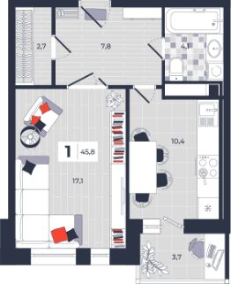 Продаётся 1-комнатная квартира в строящемся доме (Дом 30), срок сдачи: IV-кв. 2026, общей площадью 45.8 кв.м., на 11 этаже. Расположение, транспортная доступность Новый жилой комплекс "Юго-Восточный" строится в Туле, в 3,5 км от центра города. Благодаря удачным транспортным развязкам, автолюбители смогут доехать до центральных кварталов примерно за 5 10 минут, составив наиболее быстрый и удобный маршрут с учетом загруженности дорог. Проблем с мобильностью не возникнет и у пассажиров общественного транспорта. Рядом с домом расположены остановки автобусов и маршрутных такси, которые быстро довезут до любого района города. Так, чтобы добраться до центра, следует дойти пешком до остановки "Медтехника", где останавливается маршрутное такси, доезжающее до центральных кварталов всего за 7 8 минут. Инфраструктура Район, где возводится новый жилой комплекс, активно застраивается, и сеть инфраструктуры сов временем будет расширяться. Но и сейчас все, что нужно для комфортной жизни в городе, находится недалеко от жилого комплекса. В шаговой доступности расположены продуктовые магазины: "Виктория", "Овощи-фрукты", Магазин рыбы и мяса птицы, магазин мяса и колбас "У Максима", супермаркеты "Дикси", "Пятерочка", "SPAR". Неподалеку находится гипермаркет "Линия", крупный торговый центр, в котором расположены отделения банков, гипермаркет "Глобус", салон оптики, мебельный магазин "Столплит", зоомагазин "Четыре лапы" и пр. В соседнем здании находится строительный гипермаркет "Леруа Мерлен", за ним крупный магазин товаров для спорта, туризма и активного отдыха "Декатлон".Недалеко от жилого комплекса открыты кафе и рестораны: кофейня "Bonape", пиццерия "Культура", кафе "Вкуснов", кафе быстрого обслуживания "Rapido", ресторан "У фонтана" и пр.В районе есть аптеки, поликлиники, диагностические центры. В шаговой доступности от жилого комплекса расположено несколько детских садиков, в том числе, садик комбинированного вида "Алые паруса". Есть дошкольные отделения, входящие в состав образовательных центров, Центры развития ребенка. Поблизости расположены средние школы, в том числе, школа для детей с ОВЗ. Рядом с жилым комплексом находится Тульская Духовная Семинария и Суворовское училище. Надежность застройщик: достраивает объект ООО Ин-Групп.АрхитектураЖилой комплекс будет представлен 19 монолитно-кирпичными корпусами переменной этажности, выполненными в едином архитектурном стиле. При строительстве ЖК "Юго-Восточный" применяются современные материалы высокого качества, которые обеспечивают надежность домов и комфортный микроклимат в помещениях. Каждая секция оснащается современными лифтами. Помещения общего пользования отделываются экологичными материалами. Квартиры предлагаются однокомнатные (от 43,9 кв. м), двухкомнатные (от 45,8 кв. м), трехкомнатные (от 60,4 кв. м) и четырехкомнатные (от 87,2 кв. м), а также уютные студии (от 28,9 кв. м).На внутренней территории проводится комплексное благоустройство: озеленение, организация игровых площадок, мест для отдыха и за