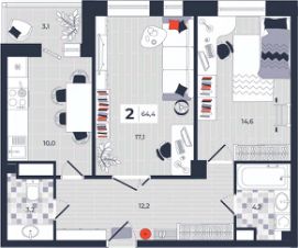 Продаётся 2-комнатная квартира в строящемся доме (Дом 30), срок сдачи: IV-кв. 2026, общей площадью 64.4 кв.м., на 11 этаже. Расположение, транспортная доступность Новый жилой комплекс "Юго-Восточный" строится в Туле, в 3,5 км от центра города. Благодаря удачным транспортным развязкам, автолюбители смогут доехать до центральных кварталов примерно за 5 10 минут, составив наиболее быстрый и удобный маршрут с учетом загруженности дорог. Проблем с мобильностью не возникнет и у пассажиров общественного транспорта. Рядом с домом расположены остановки автобусов и маршрутных такси, которые быстро довезут до любого района города. Так, чтобы добраться до центра, следует дойти пешком до остановки "Медтехника", где останавливается маршрутное такси, доезжающее до центральных кварталов всего за 7 8 минут. Инфраструктура Район, где возводится новый жилой комплекс, активно застраивается, и сеть инфраструктуры сов временем будет расширяться. Но и сейчас все, что нужно для комфортной жизни в городе, находится недалеко от жилого комплекса. В шаговой доступности расположены продуктовые магазины: "Виктория", "Овощи-фрукты", Магазин рыбы и мяса птицы, магазин мяса и колбас "У Максима", супермаркеты "Дикси", "Пятерочка", "SPAR". Неподалеку находится гипермаркет "Линия", крупный торговый центр, в котором расположены отделения банков, гипермаркет "Глобус", салон оптики, мебельный магазин "Столплит", зоомагазин "Четыре лапы" и пр. В соседнем здании находится строительный гипермаркет "Леруа Мерлен", за ним крупный магазин товаров для спорта, туризма и активного отдыха "Декатлон".Недалеко от жилого комплекса открыты кафе и рестораны: кофейня "Bonape", пиццерия "Культура", кафе "Вкуснов", кафе быстрого обслуживания "Rapido", ресторан "У фонтана" и пр.В районе есть аптеки, поликлиники, диагностические центры. В шаговой доступности от жилого комплекса расположено несколько детских садиков, в том числе, садик комбинированного вида "Алые паруса". Есть дошкольные отделения, входящие в состав образовательных центров, Центры развития ребенка. Поблизости расположены средние школы, в том числе, школа для детей с ОВЗ. Рядом с жилым комплексом находится Тульская Духовная Семинария и Суворовское училище. Надежность застройщик: достраивает объект ООО Ин-Групп.АрхитектураЖилой комплекс будет представлен 19 монолитно-кирпичными корпусами переменной этажности, выполненными в едином архитектурном стиле. При строительстве ЖК "Юго-Восточный" применяются современные материалы высокого качества, которые обеспечивают надежность домов и комфортный микроклимат в помещениях. Каждая секция оснащается современными лифтами. Помещения общего пользования отделываются экологичными материалами. Квартиры предлагаются однокомнатные (от 43,9 кв. м), двухкомнатные (от 45,8 кв. м), трехкомнатные (от 60,4 кв. м) и четырехкомнатные (от 87,2 кв. м), а также уютные студии (от 28,9 кв. м).На внутренней территории проводится комплексное благоустройство: озеленение, организация игровых площадок, мест для отдыха и за