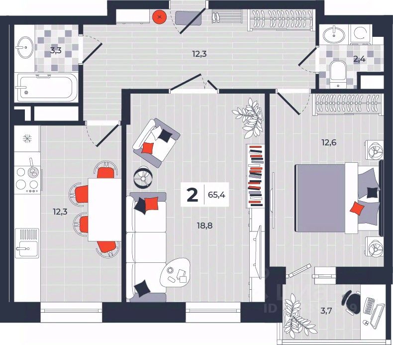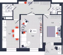Продаётся 2-комнатная квартира в строящемся доме (Дом 30), срок сдачи: IV-кв. 2026, общей площадью 65.4 кв.м., на 12 этаже. Расположение, транспортная доступность Новый жилой комплекс "Юго-Восточный" строится в Туле, в 3,5 км от центра города. Благодаря удачным транспортным развязкам, автолюбители смогут доехать до центральных кварталов примерно за 5 10 минут, составив наиболее быстрый и удобный маршрут с учетом загруженности дорог. Проблем с мобильностью не возникнет и у пассажиров общественного транспорта. Рядом с домом расположены остановки автобусов и маршрутных такси, которые быстро довезут до любого района города. Так, чтобы добраться до центра, следует дойти пешком до остановки "Медтехника", где останавливается маршрутное такси, доезжающее до центральных кварталов всего за 7 8 минут. Инфраструктура Район, где возводится новый жилой комплекс, активно застраивается, и сеть инфраструктуры сов временем будет расширяться. Но и сейчас все, что нужно для комфортной жизни в городе, находится недалеко от жилого комплекса. В шаговой доступности расположены продуктовые магазины: "Виктория", "Овощи-фрукты", Магазин рыбы и мяса птицы, магазин мяса и колбас "У Максима", супермаркеты "Дикси", "Пятерочка", "SPAR". Неподалеку находится гипермаркет "Линия", крупный торговый центр, в котором расположены отделения банков, гипермаркет "Глобус", салон оптики, мебельный магазин "Столплит", зоомагазин "Четыре лапы" и пр. В соседнем здании находится строительный гипермаркет "Леруа Мерлен", за ним крупный магазин товаров для спорта, туризма и активного отдыха "Декатлон".Недалеко от жилого комплекса открыты кафе и рестораны: кофейня "Bonape", пиццерия "Культура", кафе "Вкуснов", кафе быстрого обслуживания "Rapido", ресторан "У фонтана" и пр.В районе есть аптеки, поликлиники, диагностические центры. В шаговой доступности от жилого комплекса расположено несколько детских садиков, в том числе, садик комбинированного вида "Алые паруса". Есть дошкольные отделения, входящие в состав образовательных центров, Центры развития ребенка. Поблизости расположены средние школы, в том числе, школа для детей с ОВЗ. Рядом с жилым комплексом находится Тульская Духовная Семинария и Суворовское училище. Надежность застройщик: достраивает объект ООО Ин-Групп.АрхитектураЖилой комплекс будет представлен 19 монолитно-кирпичными корпусами переменной этажности, выполненными в едином архитектурном стиле. При строительстве ЖК "Юго-Восточный" применяются современные материалы высокого качества, которые обеспечивают надежность домов и комфортный микроклимат в помещениях. Каждая секция оснащается современными лифтами. Помещения общего пользования отделываются экологичными материалами. Квартиры предлагаются однокомнатные (от 43,9 кв. м), двухкомнатные (от 45,8 кв. м), трехкомнатные (от 60,4 кв. м) и четырехкомнатные (от 87,2 кв. м), а также уютные студии (от 28,9 кв. м).На внутренней территории проводится комплексное благоустройство: озеленение, организация игровых площадок, мест для отдыха и за
