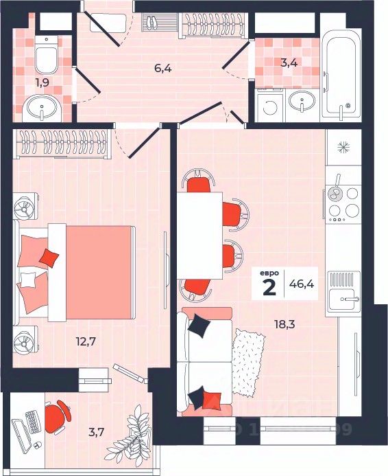 Продаётся 2-комнатная квартира в строящемся доме (Дом 30), срок сдачи: IV-кв. 2026, общей площадью 46.4 кв.м., на 14 этаже. Расположение, транспортная доступность Новый жилой комплекс "Юго-Восточный" строится в Туле, в 3,5 км от центра города. Благодаря удачным транспортным развязкам, автолюбители смогут доехать до центральных кварталов примерно за 5 10 минут, составив наиболее быстрый и удобный маршрут с учетом загруженности дорог. Проблем с мобильностью не возникнет и у пассажиров общественного транспорта. Рядом с домом расположены остановки автобусов и маршрутных такси, которые быстро довезут до любого района города. Так, чтобы добраться до центра, следует дойти пешком до остановки "Медтехника", где останавливается маршрутное такси, доезжающее до центральных кварталов всего за 7 8 минут. Инфраструктура Район, где возводится новый жилой комплекс, активно застраивается, и сеть инфраструктуры сов временем будет расширяться. Но и сейчас все, что нужно для комфортной жизни в городе, находится недалеко от жилого комплекса. В шаговой доступности расположены продуктовые магазины: "Виктория", "Овощи-фрукты", Магазин рыбы и мяса птицы, магазин мяса и колбас "У Максима", супермаркеты "Дикси", "Пятерочка", "SPAR". Неподалеку находится гипермаркет "Линия", крупный торговый центр, в котором расположены отделения банков, гипермаркет "Глобус", салон оптики, мебельный магазин "Столплит", зоомагазин "Четыре лапы" и пр. В соседнем здании находится строительный гипермаркет "Леруа Мерлен", за ним крупный магазин товаров для спорта, туризма и активного отдыха "Декатлон".Недалеко от жилого комплекса открыты кафе и рестораны: кофейня "Bonape", пиццерия "Культура", кафе "Вкуснов", кафе быстрого обслуживания "Rapido", ресторан "У фонтана" и пр.В районе есть аптеки, поликлиники, диагностические центры. В шаговой доступности от жилого комплекса расположено несколько детских садиков, в том числе, садик комбинированного вида "Алые паруса". Есть дошкольные отделения, входящие в состав образовательных центров, Центры развития ребенка. Поблизости расположены средние школы, в том числе, школа для детей с ОВЗ. Рядом с жилым комплексом находится Тульская Духовная Семинария и Суворовское училище. Надежность застройщик: достраивает объект ООО Ин-Групп.АрхитектураЖилой комплекс будет представлен 19 монолитно-кирпичными корпусами переменной этажности, выполненными в едином архитектурном стиле. При строительстве ЖК "Юго-Восточный" применяются современные материалы высокого качества, которые обеспечивают надежность домов и комфортный микроклимат в помещениях. Каждая секция оснащается современными лифтами. Помещения общего пользования отделываются экологичными материалами. Квартиры предлагаются однокомнатные (от 43,9 кв. м), двухкомнатные (от 45,8 кв. м), трехкомнатные (от 60,4 кв. м) и четырехкомнатные (от 87,2 кв. м), а также уютные студии (от 28,9 кв. м).На внутренней территории проводится комплексное благоустройство: озеленение, организация игровых площадок, мест для отдыха и за