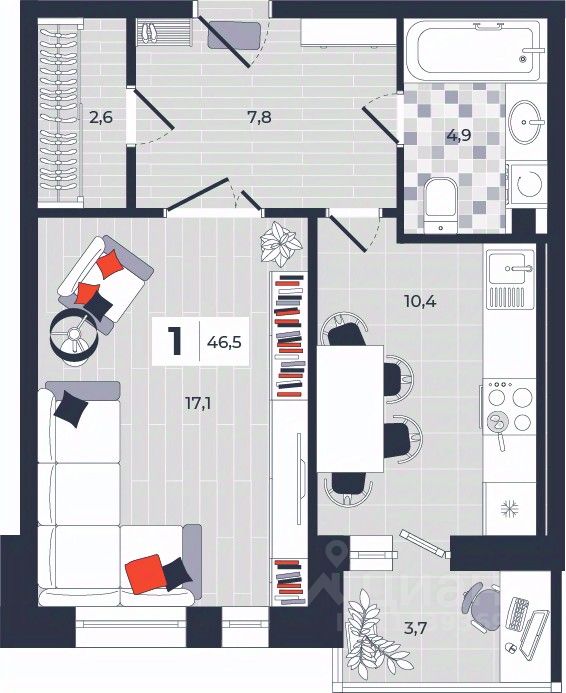 Продаётся 1-комнатная квартира в строящемся доме (Дом 30), срок сдачи: IV-кв. 2026, общей площадью 46.5 кв.м., на 2 этаже. Расположение, транспортная доступность Новый жилой комплекс "Юго-Восточный" строится в Туле, в 3,5 км от центра города. Благодаря удачным транспортным развязкам, автолюбители смогут доехать до центральных кварталов примерно за 5 10 минут, составив наиболее быстрый и удобный маршрут с учетом загруженности дорог. Проблем с мобильностью не возникнет и у пассажиров общественного транспорта. Рядом с домом расположены остановки автобусов и маршрутных такси, которые быстро довезут до любого района города. Так, чтобы добраться до центра, следует дойти пешком до остановки "Медтехника", где останавливается маршрутное такси, доезжающее до центральных кварталов всего за 7 8 минут. Инфраструктура Район, где возводится новый жилой комплекс, активно застраивается, и сеть инфраструктуры сов временем будет расширяться. Но и сейчас все, что нужно для комфортной жизни в городе, находится недалеко от жилого комплекса. В шаговой доступности расположены продуктовые магазины: "Виктория", "Овощи-фрукты", Магазин рыбы и мяса птицы, магазин мяса и колбас "У Максима", супермаркеты "Дикси", "Пятерочка", "SPAR". Неподалеку находится гипермаркет "Линия", крупный торговый центр, в котором расположены отделения банков, гипермаркет "Глобус", салон оптики, мебельный магазин "Столплит", зоомагазин "Четыре лапы" и пр. В соседнем здании находится строительный гипермаркет "Леруа Мерлен", за ним крупный магазин товаров для спорта, туризма и активного отдыха "Декатлон".Недалеко от жилого комплекса открыты кафе и рестораны: кофейня "Bonape", пиццерия "Культура", кафе "Вкуснов", кафе быстрого обслуживания "Rapido", ресторан "У фонтана" и пр.В районе есть аптеки, поликлиники, диагностические центры. В шаговой доступности от жилого комплекса расположено несколько детских садиков, в том числе, садик комбинированного вида "Алые паруса". Есть дошкольные отделения, входящие в состав образовательных центров, Центры развития ребенка. Поблизости расположены средние школы, в том числе, школа для детей с ОВЗ. Рядом с жилым комплексом находится Тульская Духовная Семинария и Суворовское училище. Надежность застройщик: достраивает объект ООО Ин-Групп.АрхитектураЖилой комплекс будет представлен 19 монолитно-кирпичными корпусами переменной этажности, выполненными в едином архитектурном стиле. При строительстве ЖК "Юго-Восточный" применяются современные материалы высокого качества, которые обеспечивают надежность домов и комфортный микроклимат в помещениях. Каждая секция оснащается современными лифтами. Помещения общего пользования отделываются экологичными материалами. Квартиры предлагаются однокомнатные (от 43,9 кв. м), двухкомнатные (от 45,8 кв. м), трехкомнатные (от 60,4 кв. м) и четырехкомнатные (от 87,2 кв. м), а также уютные студии (от 28,9 кв. м).На внутренней территории проводится комплексное благоустройство: озеленение, организация игровых площадок, мест для отдыха и зан