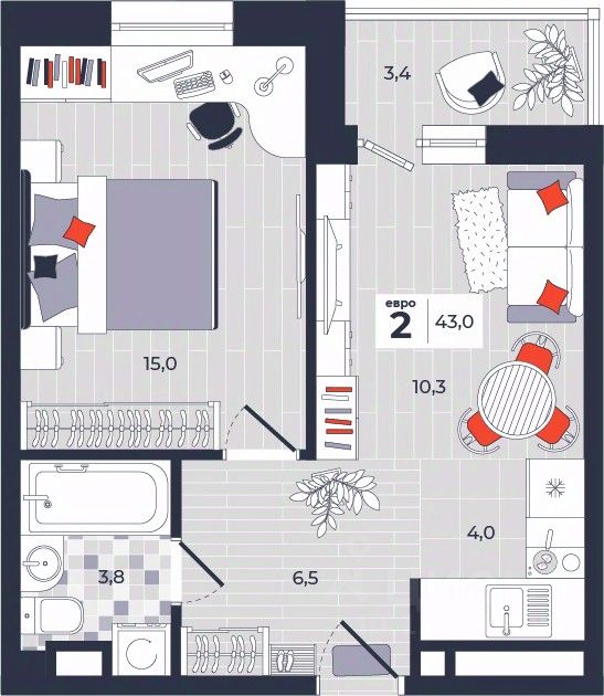 Продаётся 2-комнатная квартира в строящемся доме (Дом 30), срок сдачи: IV-кв. 2026, общей площадью 43 кв.м., на 8 этаже. Расположение, транспортная доступность Новый жилой комплекс "Юго-Восточный" строится в Туле, в 3,5 км от центра города. Благодаря удачным транспортным развязкам, автолюбители смогут доехать до центральных кварталов примерно за 5 10 минут, составив наиболее быстрый и удобный маршрут с учетом загруженности дорог. Проблем с мобильностью не возникнет и у пассажиров общественного транспорта. Рядом с домом расположены остановки автобусов и маршрутных такси, которые быстро довезут до любого района города. Так, чтобы добраться до центра, следует дойти пешком до остановки "Медтехника", где останавливается маршрутное такси, доезжающее до центральных кварталов всего за 7 8 минут. Инфраструктура Район, где возводится новый жилой комплекс, активно застраивается, и сеть инфраструктуры сов временем будет расширяться. Но и сейчас все, что нужно для комфортной жизни в городе, находится недалеко от жилого комплекса. В шаговой доступности расположены продуктовые магазины: "Виктория", "Овощи-фрукты", Магазин рыбы и мяса птицы, магазин мяса и колбас "У Максима", супермаркеты "Дикси", "Пятерочка", "SPAR". Неподалеку находится гипермаркет "Линия", крупный торговый центр, в котором расположены отделения банков, гипермаркет "Глобус", салон оптики, мебельный магазин "Столплит", зоомагазин "Четыре лапы" и пр. В соседнем здании находится строительный гипермаркет "Леруа Мерлен", за ним крупный магазин товаров для спорта, туризма и активного отдыха "Декатлон".Недалеко от жилого комплекса открыты кафе и рестораны: кофейня "Bonape", пиццерия "Культура", кафе "Вкуснов", кафе быстрого обслуживания "Rapido", ресторан "У фонтана" и пр.В районе есть аптеки, поликлиники, диагностические центры. В шаговой доступности от жилого комплекса расположено несколько детских садиков, в том числе, садик комбинированного вида "Алые паруса". Есть дошкольные отделения, входящие в состав образовательных центров, Центры развития ребенка. Поблизости расположены средние школы, в том числе, школа для детей с ОВЗ. Рядом с жилым комплексом находится Тульская Духовная Семинария и Суворовское училище. Надежность застройщик: достраивает объект ООО Ин-Групп.АрхитектураЖилой комплекс будет представлен 19 монолитно-кирпичными корпусами переменной этажности, выполненными в едином архитектурном стиле. При строительстве ЖК "Юго-Восточный" применяются современные материалы высокого качества, которые обеспечивают надежность домов и комфортный микроклимат в помещениях. Каждая секция оснащается современными лифтами. Помещения общего пользования отделываются экологичными материалами. Квартиры предлагаются однокомнатные (от 43,9 кв. м), двухкомнатные (от 45,8 кв. м), трехкомнатные (от 60,4 кв. м) и четырехкомнатные (от 87,2 кв. м), а также уютные студии (от 28,9 кв. м).На внутренней территории проводится комплексное благоустройство: озеленение, организация игровых площадок, мест для отдыха и занят