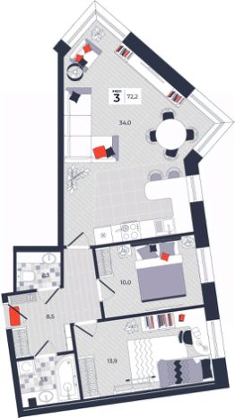 Продаётся 3-комнатная квартира в строящемся доме (Дом 30), срок сдачи: IV-кв. 2026, общей площадью 72.2 кв.м., на 12 этаже. Расположение, транспортная доступность Новый жилой комплекс "Юго-Восточный" строится в Туле, в 3,5 км от центра города. Благодаря удачным транспортным развязкам, автолюбители смогут доехать до центральных кварталов примерно за 5 10 минут, составив наиболее быстрый и удобный маршрут с учетом загруженности дорог. Проблем с мобильностью не возникнет и у пассажиров общественного транспорта. Рядом с домом расположены остановки автобусов и маршрутных такси, которые быстро довезут до любого района города. Так, чтобы добраться до центра, следует дойти пешком до остановки "Медтехника", где останавливается маршрутное такси, доезжающее до центральных кварталов всего за 7 8 минут. Инфраструктура Район, где возводится новый жилой комплекс, активно застраивается, и сеть инфраструктуры сов временем будет расширяться. Но и сейчас все, что нужно для комфортной жизни в городе, находится недалеко от жилого комплекса. В шаговой доступности расположены продуктовые магазины: "Виктория", "Овощи-фрукты", Магазин рыбы и мяса птицы, магазин мяса и колбас "У Максима", супермаркеты "Дикси", "Пятерочка", "SPAR". Неподалеку находится гипермаркет "Линия", крупный торговый центр, в котором расположены отделения банков, гипермаркет "Глобус", салон оптики, мебельный магазин "Столплит", зоомагазин "Четыре лапы" и пр. В соседнем здании находится строительный гипермаркет "Леруа Мерлен", за ним крупный магазин товаров для спорта, туризма и активного отдыха "Декатлон".Недалеко от жилого комплекса открыты кафе и рестораны: кофейня "Bonape", пиццерия "Культура", кафе "Вкуснов", кафе быстрого обслуживания "Rapido", ресторан "У фонтана" и пр.В районе есть аптеки, поликлиники, диагностические центры. В шаговой доступности от жилого комплекса расположено несколько детских садиков, в том числе, садик комбинированного вида "Алые паруса". Есть дошкольные отделения, входящие в состав образовательных центров, Центры развития ребенка. Поблизости расположены средние школы, в том числе, школа для детей с ОВЗ. Рядом с жилым комплексом находится Тульская Духовная Семинария и Суворовское училище. Надежность застройщик: достраивает объект ООО Ин-Групп.АрхитектураЖилой комплекс будет представлен 19 монолитно-кирпичными корпусами переменной этажности, выполненными в едином архитектурном стиле. При строительстве ЖК "Юго-Восточный" применяются современные материалы высокого качества, которые обеспечивают надежность домов и комфортный микроклимат в помещениях. Каждая секция оснащается современными лифтами. Помещения общего пользования отделываются экологичными материалами. Квартиры предлагаются однокомнатные (от 43,9 кв. м), двухкомнатные (от 45,8 кв. м), трехкомнатные (от 60,4 кв. м) и четырехкомнатные (от 87,2 кв. м), а также уютные студии (от 28,9 кв. м).На внутренней территории проводится комплексное благоустройство: озеленение, организация игровых площадок, мест для отдыха и за