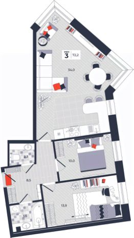 Продаётся 3-комнатная квартира в строящемся доме (Дом 30), срок сдачи: IV-кв. 2026, общей площадью 72.2 кв.м., на 14 этаже. Расположение, транспортная доступность Новый жилой комплекс "Юго-Восточный" строится в Туле, в 3,5 км от центра города. Благодаря удачным транспортным развязкам, автолюбители смогут доехать до центральных кварталов примерно за 5 10 минут, составив наиболее быстрый и удобный маршрут с учетом загруженности дорог. Проблем с мобильностью не возникнет и у пассажиров общественного транспорта. Рядом с домом расположены остановки автобусов и маршрутных такси, которые быстро довезут до любого района города. Так, чтобы добраться до центра, следует дойти пешком до остановки "Медтехника", где останавливается маршрутное такси, доезжающее до центральных кварталов всего за 7 8 минут. Инфраструктура Район, где возводится новый жилой комплекс, активно застраивается, и сеть инфраструктуры сов временем будет расширяться. Но и сейчас все, что нужно для комфортной жизни в городе, находится недалеко от жилого комплекса. В шаговой доступности расположены продуктовые магазины: "Виктория", "Овощи-фрукты", Магазин рыбы и мяса птицы, магазин мяса и колбас "У Максима", супермаркеты "Дикси", "Пятерочка", "SPAR". Неподалеку находится гипермаркет "Линия", крупный торговый центр, в котором расположены отделения банков, гипермаркет "Глобус", салон оптики, мебельный магазин "Столплит", зоомагазин "Четыре лапы" и пр. В соседнем здании находится строительный гипермаркет "Леруа Мерлен", за ним крупный магазин товаров для спорта, туризма и активного отдыха "Декатлон".Недалеко от жилого комплекса открыты кафе и рестораны: кофейня "Bonape", пиццерия "Культура", кафе "Вкуснов", кафе быстрого обслуживания "Rapido", ресторан "У фонтана" и пр.В районе есть аптеки, поликлиники, диагностические центры. В шаговой доступности от жилого комплекса расположено несколько детских садиков, в том числе, садик комбинированного вида "Алые паруса". Есть дошкольные отделения, входящие в состав образовательных центров, Центры развития ребенка. Поблизости расположены средние школы, в том числе, школа для детей с ОВЗ. Рядом с жилым комплексом находится Тульская Духовная Семинария и Суворовское училище. Надежность застройщик: достраивает объект ООО Ин-Групп.АрхитектураЖилой комплекс будет представлен 19 монолитно-кирпичными корпусами переменной этажности, выполненными в едином архитектурном стиле. При строительстве ЖК "Юго-Восточный" применяются современные материалы высокого качества, которые обеспечивают надежность домов и комфортный микроклимат в помещениях. Каждая секция оснащается современными лифтами. Помещения общего пользования отделываются экологичными материалами. Квартиры предлагаются однокомнатные (от 43,9 кв. м), двухкомнатные (от 45,8 кв. м), трехкомнатные (от 60,4 кв. м) и четырехкомнатные (от 87,2 кв. м), а также уютные студии (от 28,9 кв. м).На внутренней территории проводится комплексное благоустройство: озеленение, организация игровых площадок, мест для отдыха и за