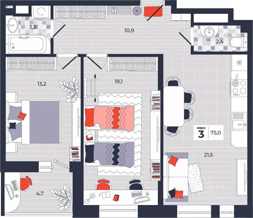Продаётся 3-комнатная квартира в строящемся доме (Дом 30), срок сдачи: IV-кв. 2026, общей площадью 75 кв.м., на 5 этаже. Расположение, транспортная доступность Новый жилой комплекс "Юго-Восточный" строится в Туле, в 3,5 км от центра города. Благодаря удачным транспортным развязкам, автолюбители смогут доехать до центральных кварталов примерно за 5 10 минут, составив наиболее быстрый и удобный маршрут с учетом загруженности дорог. Проблем с мобильностью не возникнет и у пассажиров общественного транспорта. Рядом с домом расположены остановки автобусов и маршрутных такси, которые быстро довезут до любого района города. Так, чтобы добраться до центра, следует дойти пешком до остановки "Медтехника", где останавливается маршрутное такси, доезжающее до центральных кварталов всего за 7 8 минут. Инфраструктура Район, где возводится новый жилой комплекс, активно застраивается, и сеть инфраструктуры сов временем будет расширяться. Но и сейчас все, что нужно для комфортной жизни в городе, находится недалеко от жилого комплекса. В шаговой доступности расположены продуктовые магазины: "Виктория", "Овощи-фрукты", Магазин рыбы и мяса птицы, магазин мяса и колбас "У Максима", супермаркеты "Дикси", "Пятерочка", "SPAR". Неподалеку находится гипермаркет "Линия", крупный торговый центр, в котором расположены отделения банков, гипермаркет "Глобус", салон оптики, мебельный магазин "Столплит", зоомагазин "Четыре лапы" и пр. В соседнем здании находится строительный гипермаркет "Леруа Мерлен", за ним крупный магазин товаров для спорта, туризма и активного отдыха "Декатлон".Недалеко от жилого комплекса открыты кафе и рестораны: кофейня "Bonape", пиццерия "Культура", кафе "Вкуснов", кафе быстрого обслуживания "Rapido", ресторан "У фонтана" и пр.В районе есть аптеки, поликлиники, диагностические центры. В шаговой доступности от жилого комплекса расположено несколько детских садиков, в том числе, садик комбинированного вида "Алые паруса". Есть дошкольные отделения, входящие в состав образовательных центров, Центры развития ребенка. Поблизости расположены средние школы, в том числе, школа для детей с ОВЗ. Рядом с жилым комплексом находится Тульская Духовная Семинария и Суворовское училище. Надежность застройщик: достраивает объект ООО Ин-Групп.АрхитектураЖилой комплекс будет представлен 19 монолитно-кирпичными корпусами переменной этажности, выполненными в едином архитектурном стиле. При строительстве ЖК "Юго-Восточный" применяются современные материалы высокого качества, которые обеспечивают надежность домов и комфортный микроклимат в помещениях. Каждая секция оснащается современными лифтами. Помещения общего пользования отделываются экологичными материалами. Квартиры предлагаются однокомнатные (от 43,9 кв. м), двухкомнатные (от 45,8 кв. м), трехкомнатные (от 60,4 кв. м) и четырехкомнатные (от 87,2 кв. м), а также уютные студии (от 28,9 кв. м).На внутренней территории проводится комплексное благоустройство: озеленение, организация игровых площадок, мест для отдыха и занят