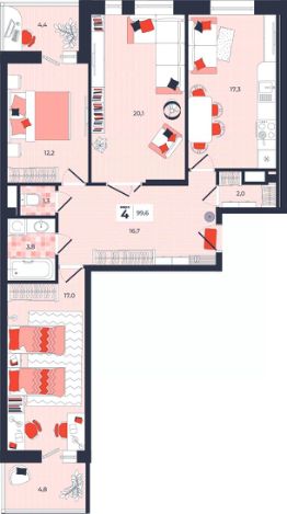 Продаётся 4-комнатная квартира в строящемся доме (Дом 30), срок сдачи: IV-кв. 2026, общей площадью 99.6 кв.м., на 6 этаже. Расположение, транспортная доступность Новый жилой комплекс "Юго-Восточный" строится в Туле, в 3,5 км от центра города. Благодаря удачным транспортным развязкам, автолюбители смогут доехать до центральных кварталов примерно за 5 10 минут, составив наиболее быстрый и удобный маршрут с учетом загруженности дорог. Проблем с мобильностью не возникнет и у пассажиров общественного транспорта. Рядом с домом расположены остановки автобусов и маршрутных такси, которые быстро довезут до любого района города. Так, чтобы добраться до центра, следует дойти пешком до остановки "Медтехника", где останавливается маршрутное такси, доезжающее до центральных кварталов всего за 7 8 минут. Инфраструктура Район, где возводится новый жилой комплекс, активно застраивается, и сеть инфраструктуры сов временем будет расширяться. Но и сейчас все, что нужно для комфортной жизни в городе, находится недалеко от жилого комплекса. В шаговой доступности расположены продуктовые магазины: "Виктория", "Овощи-фрукты", Магазин рыбы и мяса птицы, магазин мяса и колбас "У Максима", супермаркеты "Дикси", "Пятерочка", "SPAR". Неподалеку находится гипермаркет "Линия", крупный торговый центр, в котором расположены отделения банков, гипермаркет "Глобус", салон оптики, мебельный магазин "Столплит", зоомагазин "Четыре лапы" и пр. В соседнем здании находится строительный гипермаркет "Леруа Мерлен", за ним крупный магазин товаров для спорта, туризма и активного отдыха "Декатлон".Недалеко от жилого комплекса открыты кафе и рестораны: кофейня "Bonape", пиццерия "Культура", кафе "Вкуснов", кафе быстрого обслуживания "Rapido", ресторан "У фонтана" и пр.В районе есть аптеки, поликлиники, диагностические центры. В шаговой доступности от жилого комплекса расположено несколько детских садиков, в том числе, садик комбинированного вида "Алые паруса". Есть дошкольные отделения, входящие в состав образовательных центров, Центры развития ребенка. Поблизости расположены средние школы, в том числе, школа для детей с ОВЗ. Рядом с жилым комплексом находится Тульская Духовная Семинария и Суворовское училище. Надежность застройщик: достраивает объект ООО Ин-Групп.АрхитектураЖилой комплекс будет представлен 19 монолитно-кирпичными корпусами переменной этажности, выполненными в едином архитектурном стиле. При строительстве ЖК "Юго-Восточный" применяются современные материалы высокого качества, которые обеспечивают надежность домов и комфортный микроклимат в помещениях. Каждая секция оснащается современными лифтами. Помещения общего пользования отделываются экологичными материалами. Квартиры предлагаются однокомнатные (от 43,9 кв. м), двухкомнатные (от 45,8 кв. м), трехкомнатные (от 60,4 кв. м) и четырехкомнатные (от 87,2 кв. м), а также уютные студии (от 28,9 кв. м).На внутренней территории проводится комплексное благоустройство: озеленение, организация игровых площадок, мест для отдыха и зан