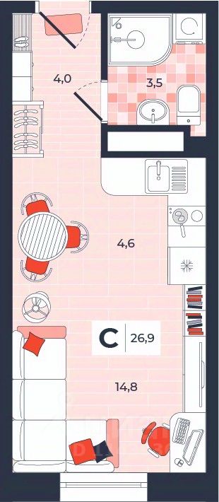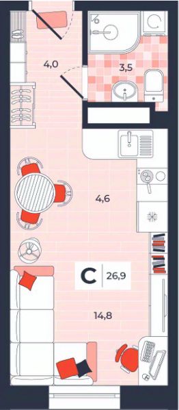 Продаётся студия в строящемся доме (Дом 30), срок сдачи: IV-кв. 2026, общей площадью 26.9 кв.м., на 8 этаже. Расположение, транспортная доступность Новый жилой комплекс "Юго-Восточный" строится в Туле, в 3,5 км от центра города. Благодаря удачным транспортным развязкам, автолюбители смогут доехать до центральных кварталов примерно за 5 10 минут, составив наиболее быстрый и удобный маршрут с учетом загруженности дорог. Проблем с мобильностью не возникнет и у пассажиров общественного транспорта. Рядом с домом расположены остановки автобусов и маршрутных такси, которые быстро довезут до любого района города. Так, чтобы добраться до центра, следует дойти пешком до остановки "Медтехника", где останавливается маршрутное такси, доезжающее до центральных кварталов всего за 7 8 минут. Инфраструктура Район, где возводится новый жилой комплекс, активно застраивается, и сеть инфраструктуры сов временем будет расширяться. Но и сейчас все, что нужно для комфортной жизни в городе, находится недалеко от жилого комплекса. В шаговой доступности расположены продуктовые магазины: "Виктория", "Овощи-фрукты", Магазин рыбы и мяса птицы, магазин мяса и колбас "У Максима", супермаркеты "Дикси", "Пятерочка", "SPAR". Неподалеку находится гипермаркет "Линия", крупный торговый центр, в котором расположены отделения банков, гипермаркет "Глобус", салон оптики, мебельный магазин "Столплит", зоомагазин "Четыре лапы" и пр. В соседнем здании находится строительный гипермаркет "Леруа Мерлен", за ним крупный магазин товаров для спорта, туризма и активного отдыха "Декатлон".Недалеко от жилого комплекса открыты кафе и рестораны: кофейня "Bonape", пиццерия "Культура", кафе "Вкуснов", кафе быстрого обслуживания "Rapido", ресторан "У фонтана" и пр.В районе есть аптеки, поликлиники, диагностические центры. В шаговой доступности от жилого комплекса расположено несколько детских садиков, в том числе, садик комбинированного вида "Алые паруса". Есть дошкольные отделения, входящие в состав образовательных центров, Центры развития ребенка. Поблизости расположены средние школы, в том числе, школа для детей с ОВЗ. Рядом с жилым комплексом находится Тульская Духовная Семинария и Суворовское училище. Надежность застройщик: достраивает объект ООО Ин-Групп.АрхитектураЖилой комплекс будет представлен 19 монолитно-кирпичными корпусами переменной этажности, выполненными в едином архитектурном стиле. При строительстве ЖК "Юго-Восточный" применяются современные материалы высокого качества, которые обеспечивают надежность домов и комфортный микроклимат в помещениях. Каждая секция оснащается современными лифтами. Помещения общего пользования отделываются экологичными материалами. Квартиры предлагаются однокомнатные (от 43,9 кв. м), двухкомнатные (от 45,8 кв. м), трехкомнатные (от 60,4 кв. м) и четырехкомнатные (от 87,2 кв. м), а также уютные студии (от 28,9 кв. м).На внутренней территории проводится комплексное благоустройство: озеленение, организация игровых площадок, мест для отдыха и занятий спортом,