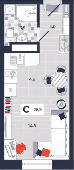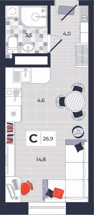Продаётся студия в строящемся доме (Дом 30), срок сдачи: IV-кв. 2026, общей площадью 26.9 кв.м., на 9 этаже. Расположение, транспортная доступность Новый жилой комплекс "Юго-Восточный" строится в Туле, в 3,5 км от центра города. Благодаря удачным транспортным развязкам, автолюбители смогут доехать до центральных кварталов примерно за 5 10 минут, составив наиболее быстрый и удобный маршрут с учетом загруженности дорог. Проблем с мобильностью не возникнет и у пассажиров общественного транспорта. Рядом с домом расположены остановки автобусов и маршрутных такси, которые быстро довезут до любого района города. Так, чтобы добраться до центра, следует дойти пешком до остановки "Медтехника", где останавливается маршрутное такси, доезжающее до центральных кварталов всего за 7 8 минут. Инфраструктура Район, где возводится новый жилой комплекс, активно застраивается, и сеть инфраструктуры сов временем будет расширяться. Но и сейчас все, что нужно для комфортной жизни в городе, находится недалеко от жилого комплекса. В шаговой доступности расположены продуктовые магазины: "Виктория", "Овощи-фрукты", Магазин рыбы и мяса птицы, магазин мяса и колбас "У Максима", супермаркеты "Дикси", "Пятерочка", "SPAR". Неподалеку находится гипермаркет "Линия", крупный торговый центр, в котором расположены отделения банков, гипермаркет "Глобус", салон оптики, мебельный магазин "Столплит", зоомагазин "Четыре лапы" и пр. В соседнем здании находится строительный гипермаркет "Леруа Мерлен", за ним крупный магазин товаров для спорта, туризма и активного отдыха "Декатлон".Недалеко от жилого комплекса открыты кафе и рестораны: кофейня "Bonape", пиццерия "Культура", кафе "Вкуснов", кафе быстрого обслуживания "Rapido", ресторан "У фонтана" и пр.В районе есть аптеки, поликлиники, диагностические центры. В шаговой доступности от жилого комплекса расположено несколько детских садиков, в том числе, садик комбинированного вида "Алые паруса". Есть дошкольные отделения, входящие в состав образовательных центров, Центры развития ребенка. Поблизости расположены средние школы, в том числе, школа для детей с ОВЗ. Рядом с жилым комплексом находится Тульская Духовная Семинария и Суворовское училище. Надежность застройщик: достраивает объект ООО Ин-Групп.АрхитектураЖилой комплекс будет представлен 19 монолитно-кирпичными корпусами переменной этажности, выполненными в едином архитектурном стиле. При строительстве ЖК "Юго-Восточный" применяются современные материалы высокого качества, которые обеспечивают надежность домов и комфортный микроклимат в помещениях. Каждая секция оснащается современными лифтами. Помещения общего пользования отделываются экологичными материалами. Квартиры предлагаются однокомнатные (от 43,9 кв. м), двухкомнатные (от 45,8 кв. м), трехкомнатные (от 60,4 кв. м) и четырехкомнатные (от 87,2 кв. м), а также уютные студии (от 28,9 кв. м).На внутренней территории проводится комплексное благоустройство: озеленение, организация игровых площадок, мест для отдыха и занятий спортом,