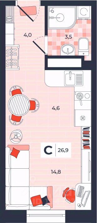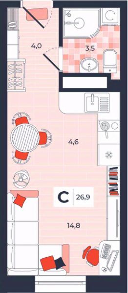 Продаётся студия в строящемся доме (Дом 30), срок сдачи: IV-кв. 2026, общей площадью 26.9 кв.м., на 9 этаже. Расположение, транспортная доступность Новый жилой комплекс "Юго-Восточный" строится в Туле, в 3,5 км от центра города. Благодаря удачным транспортным развязкам, автолюбители смогут доехать до центральных кварталов примерно за 5 10 минут, составив наиболее быстрый и удобный маршрут с учетом загруженности дорог. Проблем с мобильностью не возникнет и у пассажиров общественного транспорта. Рядом с домом расположены остановки автобусов и маршрутных такси, которые быстро довезут до любого района города. Так, чтобы добраться до центра, следует дойти пешком до остановки "Медтехника", где останавливается маршрутное такси, доезжающее до центральных кварталов всего за 7 8 минут. Инфраструктура Район, где возводится новый жилой комплекс, активно застраивается, и сеть инфраструктуры сов временем будет расширяться. Но и сейчас все, что нужно для комфортной жизни в городе, находится недалеко от жилого комплекса. В шаговой доступности расположены продуктовые магазины: "Виктория", "Овощи-фрукты", Магазин рыбы и мяса птицы, магазин мяса и колбас "У Максима", супермаркеты "Дикси", "Пятерочка", "SPAR". Неподалеку находится гипермаркет "Линия", крупный торговый центр, в котором расположены отделения банков, гипермаркет "Глобус", салон оптики, мебельный магазин "Столплит", зоомагазин "Четыре лапы" и пр. В соседнем здании находится строительный гипермаркет "Леруа Мерлен", за ним крупный магазин товаров для спорта, туризма и активного отдыха "Декатлон".Недалеко от жилого комплекса открыты кафе и рестораны: кофейня "Bonape", пиццерия "Культура", кафе "Вкуснов", кафе быстрого обслуживания "Rapido", ресторан "У фонтана" и пр.В районе есть аптеки, поликлиники, диагностические центры. В шаговой доступности от жилого комплекса расположено несколько детских садиков, в том числе, садик комбинированного вида "Алые паруса". Есть дошкольные отделения, входящие в состав образовательных центров, Центры развития ребенка. Поблизости расположены средние школы, в том числе, школа для детей с ОВЗ. Рядом с жилым комплексом находится Тульская Духовная Семинария и Суворовское училище. Надежность застройщик: достраивает объект ООО Ин-Групп.АрхитектураЖилой комплекс будет представлен 19 монолитно-кирпичными корпусами переменной этажности, выполненными в едином архитектурном стиле. При строительстве ЖК "Юго-Восточный" применяются современные материалы высокого качества, которые обеспечивают надежность домов и комфортный микроклимат в помещениях. Каждая секция оснащается современными лифтами. Помещения общего пользования отделываются экологичными материалами. Квартиры предлагаются однокомнатные (от 43,9 кв. м), двухкомнатные (от 45,8 кв. м), трехкомнатные (от 60,4 кв. м) и четырехкомнатные (от 87,2 кв. м), а также уютные студии (от 28,9 кв. м).На внутренней территории проводится комплексное благоустройство: озеленение, организация игровых площадок, мест для отдыха и занятий спортом,