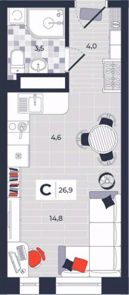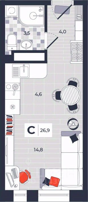 Продаётся студия в строящемся доме (Дом 30), срок сдачи: IV-кв. 2026, общей площадью 26.9 кв.м., на 10 этаже. Расположение, транспортная доступность Новый жилой комплекс "Юго-Восточный" строится в Туле, в 3,5 км от центра города. Благодаря удачным транспортным развязкам, автолюбители смогут доехать до центральных кварталов примерно за 5 10 минут, составив наиболее быстрый и удобный маршрут с учетом загруженности дорог. Проблем с мобильностью не возникнет и у пассажиров общественного транспорта. Рядом с домом расположены остановки автобусов и маршрутных такси, которые быстро довезут до любого района города. Так, чтобы добраться до центра, следует дойти пешком до остановки "Медтехника", где останавливается маршрутное такси, доезжающее до центральных кварталов всего за 7 8 минут. Инфраструктура Район, где возводится новый жилой комплекс, активно застраивается, и сеть инфраструктуры сов временем будет расширяться. Но и сейчас все, что нужно для комфортной жизни в городе, находится недалеко от жилого комплекса. В шаговой доступности расположены продуктовые магазины: "Виктория", "Овощи-фрукты", Магазин рыбы и мяса птицы, магазин мяса и колбас "У Максима", супермаркеты "Дикси", "Пятерочка", "SPAR". Неподалеку находится гипермаркет "Линия", крупный торговый центр, в котором расположены отделения банков, гипермаркет "Глобус", салон оптики, мебельный магазин "Столплит", зоомагазин "Четыре лапы" и пр. В соседнем здании находится строительный гипермаркет "Леруа Мерлен", за ним крупный магазин товаров для спорта, туризма и активного отдыха "Декатлон".Недалеко от жилого комплекса открыты кафе и рестораны: кофейня "Bonape", пиццерия "Культура", кафе "Вкуснов", кафе быстрого обслуживания "Rapido", ресторан "У фонтана" и пр.В районе есть аптеки, поликлиники, диагностические центры. В шаговой доступности от жилого комплекса расположено несколько детских садиков, в том числе, садик комбинированного вида "Алые паруса". Есть дошкольные отделения, входящие в состав образовательных центров, Центры развития ребенка. Поблизости расположены средние школы, в том числе, школа для детей с ОВЗ. Рядом с жилым комплексом находится Тульская Духовная Семинария и Суворовское училище. Надежность застройщик: достраивает объект ООО Ин-Групп.АрхитектураЖилой комплекс будет представлен 19 монолитно-кирпичными корпусами переменной этажности, выполненными в едином архитектурном стиле. При строительстве ЖК "Юго-Восточный" применяются современные материалы высокого качества, которые обеспечивают надежность домов и комфортный микроклимат в помещениях. Каждая секция оснащается современными лифтами. Помещения общего пользования отделываются экологичными материалами. Квартиры предлагаются однокомнатные (от 43,9 кв. м), двухкомнатные (от 45,8 кв. м), трехкомнатные (от 60,4 кв. м) и четырехкомнатные (от 87,2 кв. м), а также уютные студии (от 28,9 кв. м).На внутренней территории проводится комплексное благоустройство: озеленение, организация игровых площадок, мест для отдыха и занятий спортом,