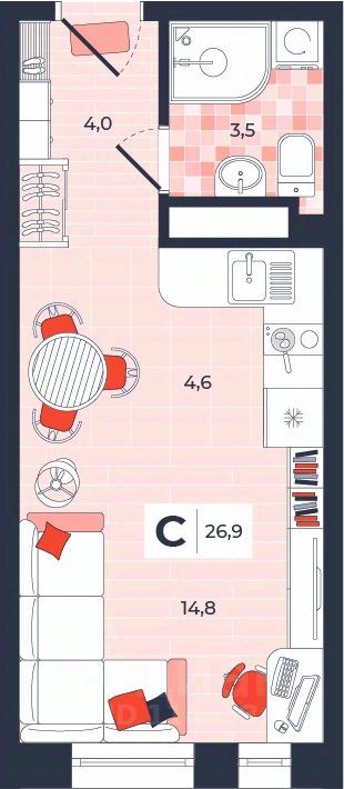 Продаётся студия в строящемся доме (Дом 30), срок сдачи: IV-кв. 2026, общей площадью 26.9 кв.м., на 10 этаже. Расположение, транспортная доступность Новый жилой комплекс "Юго-Восточный" строится в Туле, в 3,5 км от центра города. Благодаря удачным транспортным развязкам, автолюбители смогут доехать до центральных кварталов примерно за 5 10 минут, составив наиболее быстрый и удобный маршрут с учетом загруженности дорог. Проблем с мобильностью не возникнет и у пассажиров общественного транспорта. Рядом с домом расположены остановки автобусов и маршрутных такси, которые быстро довезут до любого района города. Так, чтобы добраться до центра, следует дойти пешком до остановки "Медтехника", где останавливается маршрутное такси, доезжающее до центральных кварталов всего за 7 8 минут. Инфраструктура Район, где возводится новый жилой комплекс, активно застраивается, и сеть инфраструктуры сов временем будет расширяться. Но и сейчас все, что нужно для комфортной жизни в городе, находится недалеко от жилого комплекса. В шаговой доступности расположены продуктовые магазины: "Виктория", "Овощи-фрукты", Магазин рыбы и мяса птицы, магазин мяса и колбас "У Максима", супермаркеты "Дикси", "Пятерочка", "SPAR". Неподалеку находится гипермаркет "Линия", крупный торговый центр, в котором расположены отделения банков, гипермаркет "Глобус", салон оптики, мебельный магазин "Столплит", зоомагазин "Четыре лапы" и пр. В соседнем здании находится строительный гипермаркет "Леруа Мерлен", за ним крупный магазин товаров для спорта, туризма и активного отдыха "Декатлон".Недалеко от жилого комплекса открыты кафе и рестораны: кофейня "Bonape", пиццерия "Культура", кафе "Вкуснов", кафе быстрого обслуживания "Rapido", ресторан "У фонтана" и пр.В районе есть аптеки, поликлиники, диагностические центры. В шаговой доступности от жилого комплекса расположено несколько детских садиков, в том числе, садик комбинированного вида "Алые паруса". Есть дошкольные отделения, входящие в состав образовательных центров, Центры развития ребенка. Поблизости расположены средние школы, в том числе, школа для детей с ОВЗ. Рядом с жилым комплексом находится Тульская Духовная Семинария и Суворовское училище. Надежность застройщик: достраивает объект ООО Ин-Групп.АрхитектураЖилой комплекс будет представлен 19 монолитно-кирпичными корпусами переменной этажности, выполненными в едином архитектурном стиле. При строительстве ЖК "Юго-Восточный" применяются современные материалы высокого качества, которые обеспечивают надежность домов и комфортный микроклимат в помещениях. Каждая секция оснащается современными лифтами. Помещения общего пользования отделываются экологичными материалами. Квартиры предлагаются однокомнатные (от 43,9 кв. м), двухкомнатные (от 45,8 кв. м), трехкомнатные (от 60,4 кв. м) и четырехкомнатные (от 87,2 кв. м), а также уютные студии (от 28,9 кв. м).На внутренней территории проводится комплексное благоустройство: озеленение, организация игровых площадок, мест для отдыха и занятий спортом,