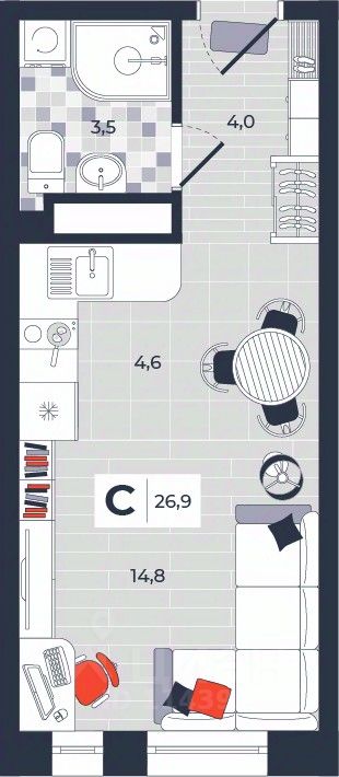 Продаётся студия в строящемся доме (Дом 30), срок сдачи: IV-кв. 2026, общей площадью 26.9 кв.м., на 11 этаже. Расположение, транспортная доступность Новый жилой комплекс "Юго-Восточный" строится в Туле, в 3,5 км от центра города. Благодаря удачным транспортным развязкам, автолюбители смогут доехать до центральных кварталов примерно за 5 10 минут, составив наиболее быстрый и удобный маршрут с учетом загруженности дорог. Проблем с мобильностью не возникнет и у пассажиров общественного транспорта. Рядом с домом расположены остановки автобусов и маршрутных такси, которые быстро довезут до любого района города. Так, чтобы добраться до центра, следует дойти пешком до остановки "Медтехника", где останавливается маршрутное такси, доезжающее до центральных кварталов всего за 7 8 минут. Инфраструктура Район, где возводится новый жилой комплекс, активно застраивается, и сеть инфраструктуры сов временем будет расширяться. Но и сейчас все, что нужно для комфортной жизни в городе, находится недалеко от жилого комплекса. В шаговой доступности расположены продуктовые магазины: "Виктория", "Овощи-фрукты", Магазин рыбы и мяса птицы, магазин мяса и колбас "У Максима", супермаркеты "Дикси", "Пятерочка", "SPAR". Неподалеку находится гипермаркет "Линия", крупный торговый центр, в котором расположены отделения банков, гипермаркет "Глобус", салон оптики, мебельный магазин "Столплит", зоомагазин "Четыре лапы" и пр. В соседнем здании находится строительный гипермаркет "Леруа Мерлен", за ним крупный магазин товаров для спорта, туризма и активного отдыха "Декатлон".Недалеко от жилого комплекса открыты кафе и рестораны: кофейня "Bonape", пиццерия "Культура", кафе "Вкуснов", кафе быстрого обслуживания "Rapido", ресторан "У фонтана" и пр.В районе есть аптеки, поликлиники, диагностические центры. В шаговой доступности от жилого комплекса расположено несколько детских садиков, в том числе, садик комбинированного вида "Алые паруса". Есть дошкольные отделения, входящие в состав образовательных центров, Центры развития ребенка. Поблизости расположены средние школы, в том числе, школа для детей с ОВЗ. Рядом с жилым комплексом находится Тульская Духовная Семинария и Суворовское училище. Надежность застройщик: достраивает объект ООО Ин-Групп.АрхитектураЖилой комплекс будет представлен 19 монолитно-кирпичными корпусами переменной этажности, выполненными в едином архитектурном стиле. При строительстве ЖК "Юго-Восточный" применяются современные материалы высокого качества, которые обеспечивают надежность домов и комфортный микроклимат в помещениях. Каждая секция оснащается современными лифтами. Помещения общего пользования отделываются экологичными материалами. Квартиры предлагаются однокомнатные (от 43,9 кв. м), двухкомнатные (от 45,8 кв. м), трехкомнатные (от 60,4 кв. м) и четырехкомнатные (от 87,2 кв. м), а также уютные студии (от 28,9 кв. м).На внутренней территории проводится комплексное благоустройство: озеленение, организация игровых площадок, мест для отдыха и занятий спортом,