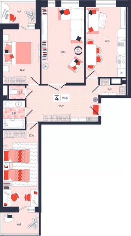 Продаётся 4-комнатная квартира в строящемся доме (Дом 30), срок сдачи: IV-кв. 2026, общей площадью 99.6 кв.м., на 14 этаже. Расположение, транспортная доступность Новый жилой комплекс "Юго-Восточный" строится в Туле, в 3,5 км от центра города. Благодаря удачным транспортным развязкам, автолюбители смогут доехать до центральных кварталов примерно за 5 10 минут, составив наиболее быстрый и удобный маршрут с учетом загруженности дорог. Проблем с мобильностью не возникнет и у пассажиров общественного транспорта. Рядом с домом расположены остановки автобусов и маршрутных такси, которые быстро довезут до любого района города. Так, чтобы добраться до центра, следует дойти пешком до остановки "Медтехника", где останавливается маршрутное такси, доезжающее до центральных кварталов всего за 7 8 минут. Инфраструктура Район, где возводится новый жилой комплекс, активно застраивается, и сеть инфраструктуры сов временем будет расширяться. Но и сейчас все, что нужно для комфортной жизни в городе, находится недалеко от жилого комплекса. В шаговой доступности расположены продуктовые магазины: "Виктория", "Овощи-фрукты", Магазин рыбы и мяса птицы, магазин мяса и колбас "У Максима", супермаркеты "Дикси", "Пятерочка", "SPAR". Неподалеку находится гипермаркет "Линия", крупный торговый центр, в котором расположены отделения банков, гипермаркет "Глобус", салон оптики, мебельный магазин "Столплит", зоомагазин "Четыре лапы" и пр. В соседнем здании находится строительный гипермаркет "Леруа Мерлен", за ним крупный магазин товаров для спорта, туризма и активного отдыха "Декатлон".Недалеко от жилого комплекса открыты кафе и рестораны: кофейня "Bonape", пиццерия "Культура", кафе "Вкуснов", кафе быстрого обслуживания "Rapido", ресторан "У фонтана" и пр.В районе есть аптеки, поликлиники, диагностические центры. В шаговой доступности от жилого комплекса расположено несколько детских садиков, в том числе, садик комбинированного вида "Алые паруса". Есть дошкольные отделения, входящие в состав образовательных центров, Центры развития ребенка. Поблизости расположены средние школы, в том числе, школа для детей с ОВЗ. Рядом с жилым комплексом находится Тульская Духовная Семинария и Суворовское училище. Надежность застройщик: достраивает объект ООО Ин-Групп.АрхитектураЖилой комплекс будет представлен 19 монолитно-кирпичными корпусами переменной этажности, выполненными в едином архитектурном стиле. При строительстве ЖК "Юго-Восточный" применяются современные материалы высокого качества, которые обеспечивают надежность домов и комфортный микроклимат в помещениях. Каждая секция оснащается современными лифтами. Помещения общего пользования отделываются экологичными материалами. Квартиры предлагаются однокомнатные (от 43,9 кв. м), двухкомнатные (от 45,8 кв. м), трехкомнатные (от 60,4 кв. м) и четырехкомнатные (от 87,2 кв. м), а также уютные студии (от 28,9 кв. м).На внутренней территории проводится комплексное благоустройство: озеленение, организация игровых площадок, мест для отдыха и за