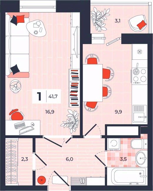 Продаётся 1-комнатная квартира в строящемся доме (Дом 30), срок сдачи: IV-кв. 2026, общей площадью 41.7 кв.м., на 5 этаже. Расположение, транспортная доступность Новый жилой комплекс "Юго-Восточный" строится в Туле, в 3,5 км от центра города. Благодаря удачным транспортным развязкам, автолюбители смогут доехать до центральных кварталов примерно за 5 10 минут, составив наиболее быстрый и удобный маршрут с учетом загруженности дорог. Проблем с мобильностью не возникнет и у пассажиров общественного транспорта. Рядом с домом расположены остановки автобусов и маршрутных такси, которые быстро довезут до любого района города. Так, чтобы добраться до центра, следует дойти пешком до остановки "Медтехника", где останавливается маршрутное такси, доезжающее до центральных кварталов всего за 7 8 минут. Инфраструктура Район, где возводится новый жилой комплекс, активно застраивается, и сеть инфраструктуры сов временем будет расширяться. Но и сейчас все, что нужно для комфортной жизни в городе, находится недалеко от жилого комплекса. В шаговой доступности расположены продуктовые магазины: "Виктория", "Овощи-фрукты", Магазин рыбы и мяса птицы, магазин мяса и колбас "У Максима", супермаркеты "Дикси", "Пятерочка", "SPAR". Неподалеку находится гипермаркет "Линия", крупный торговый центр, в котором расположены отделения банков, гипермаркет "Глобус", салон оптики, мебельный магазин "Столплит", зоомагазин "Четыре лапы" и пр. В соседнем здании находится строительный гипермаркет "Леруа Мерлен", за ним крупный магазин товаров для спорта, туризма и активного отдыха "Декатлон".Недалеко от жилого комплекса открыты кафе и рестораны: кофейня "Bonape", пиццерия "Культура", кафе "Вкуснов", кафе быстрого обслуживания "Rapido", ресторан "У фонтана" и пр.В районе есть аптеки, поликлиники, диагностические центры. В шаговой доступности от жилого комплекса расположено несколько детских садиков, в том числе, садик комбинированного вида "Алые паруса". Есть дошкольные отделения, входящие в состав образовательных центров, Центры развития ребенка. Поблизости расположены средние школы, в том числе, школа для детей с ОВЗ. Рядом с жилым комплексом находится Тульская Духовная Семинария и Суворовское училище. Надежность застройщик: достраивает объект ООО Ин-Групп.АрхитектураЖилой комплекс будет представлен 19 монолитно-кирпичными корпусами переменной этажности, выполненными в едином архитектурном стиле. При строительстве ЖК "Юго-Восточный" применяются современные материалы высокого качества, которые обеспечивают надежность домов и комфортный микроклимат в помещениях. Каждая секция оснащается современными лифтами. Помещения общего пользования отделываются экологичными материалами. Квартиры предлагаются однокомнатные (от 43,9 кв. м), двухкомнатные (от 45,8 кв. м), трехкомнатные (от 60,4 кв. м) и четырехкомнатные (от 87,2 кв. м), а также уютные студии (от 28,9 кв. м).На внутренней территории проводится комплексное благоустройство: озеленение, организация игровых площадок, мест для отдыха и зан