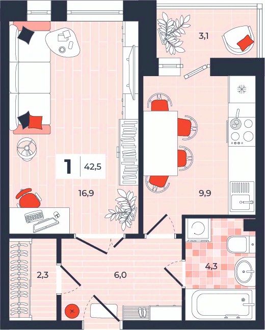 Продаётся 1-комнатная квартира в строящемся доме (Дом 30), срок сдачи: IV-кв. 2026, общей площадью 42.5 кв.м., на 2 этаже. Расположение, транспортная доступность Новый жилой комплекс "Юго-Восточный" строится в Туле, в 3,5 км от центра города. Благодаря удачным транспортным развязкам, автолюбители смогут доехать до центральных кварталов примерно за 5 10 минут, составив наиболее быстрый и удобный маршрут с учетом загруженности дорог. Проблем с мобильностью не возникнет и у пассажиров общественного транспорта. Рядом с домом расположены остановки автобусов и маршрутных такси, которые быстро довезут до любого района города. Так, чтобы добраться до центра, следует дойти пешком до остановки "Медтехника", где останавливается маршрутное такси, доезжающее до центральных кварталов всего за 7 8 минут. Инфраструктура Район, где возводится новый жилой комплекс, активно застраивается, и сеть инфраструктуры сов временем будет расширяться. Но и сейчас все, что нужно для комфортной жизни в городе, находится недалеко от жилого комплекса. В шаговой доступности расположены продуктовые магазины: "Виктория", "Овощи-фрукты", Магазин рыбы и мяса птицы, магазин мяса и колбас "У Максима", супермаркеты "Дикси", "Пятерочка", "SPAR". Неподалеку находится гипермаркет "Линия", крупный торговый центр, в котором расположены отделения банков, гипермаркет "Глобус", салон оптики, мебельный магазин "Столплит", зоомагазин "Четыре лапы" и пр. В соседнем здании находится строительный гипермаркет "Леруа Мерлен", за ним крупный магазин товаров для спорта, туризма и активного отдыха "Декатлон".Недалеко от жилого комплекса открыты кафе и рестораны: кофейня "Bonape", пиццерия "Культура", кафе "Вкуснов", кафе быстрого обслуживания "Rapido", ресторан "У фонтана" и пр.В районе есть аптеки, поликлиники, диагностические центры. В шаговой доступности от жилого комплекса расположено несколько детских садиков, в том числе, садик комбинированного вида "Алые паруса". Есть дошкольные отделения, входящие в состав образовательных центров, Центры развития ребенка. Поблизости расположены средние школы, в том числе, школа для детей с ОВЗ. Рядом с жилым комплексом находится Тульская Духовная Семинария и Суворовское училище. Надежность застройщик: достраивает объект ООО Ин-Групп.АрхитектураЖилой комплекс будет представлен 19 монолитно-кирпичными корпусами переменной этажности, выполненными в едином архитектурном стиле. При строительстве ЖК "Юго-Восточный" применяются современные материалы высокого качества, которые обеспечивают надежность домов и комфортный микроклимат в помещениях. Каждая секция оснащается современными лифтами. Помещения общего пользования отделываются экологичными материалами. Квартиры предлагаются однокомнатные (от 43,9 кв. м), двухкомнатные (от 45,8 кв. м), трехкомнатные (от 60,4 кв. м) и четырехкомнатные (от 87,2 кв. м), а также уютные студии (от 28,9 кв. м).На внутренней территории проводится комплексное благоустройство: озеленение, организация игровых площадок, мест для отдыха и зан