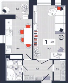 Продаётся 1-комнатная квартира в строящемся доме (Дом 30), срок сдачи: IV-кв. 2026, общей площадью 41.1 кв.м., на 6 этаже. Расположение, транспортная доступность Новый жилой комплекс "Юго-Восточный" строится в Туле, в 3,5 км от центра города. Благодаря удачным транспортным развязкам, автолюбители смогут доехать до центральных кварталов примерно за 5 10 минут, составив наиболее быстрый и удобный маршрут с учетом загруженности дорог. Проблем с мобильностью не возникнет и у пассажиров общественного транспорта. Рядом с домом расположены остановки автобусов и маршрутных такси, которые быстро довезут до любого района города. Так, чтобы добраться до центра, следует дойти пешком до остановки "Медтехника", где останавливается маршрутное такси, доезжающее до центральных кварталов всего за 7 8 минут. Инфраструктура Район, где возводится новый жилой комплекс, активно застраивается, и сеть инфраструктуры сов временем будет расширяться. Но и сейчас все, что нужно для комфортной жизни в городе, находится недалеко от жилого комплекса. В шаговой доступности расположены продуктовые магазины: "Виктория", "Овощи-фрукты", Магазин рыбы и мяса птицы, магазин мяса и колбас "У Максима", супермаркеты "Дикси", "Пятерочка", "SPAR". Неподалеку находится гипермаркет "Линия", крупный торговый центр, в котором расположены отделения банков, гипермаркет "Глобус", салон оптики, мебельный магазин "Столплит", зоомагазин "Четыре лапы" и пр. В соседнем здании находится строительный гипермаркет "Леруа Мерлен", за ним крупный магазин товаров для спорта, туризма и активного отдыха "Декатлон".Недалеко от жилого комплекса открыты кафе и рестораны: кофейня "Bonape", пиццерия "Культура", кафе "Вкуснов", кафе быстрого обслуживания "Rapido", ресторан "У фонтана" и пр.В районе есть аптеки, поликлиники, диагностические центры. В шаговой доступности от жилого комплекса расположено несколько детских садиков, в том числе, садик комбинированного вида "Алые паруса". Есть дошкольные отделения, входящие в состав образовательных центров, Центры развития ребенка. Поблизости расположены средние школы, в том числе, школа для детей с ОВЗ. Рядом с жилым комплексом находится Тульская Духовная Семинария и Суворовское училище. Надежность застройщик: достраивает объект ООО Ин-Групп.АрхитектураЖилой комплекс будет представлен 19 монолитно-кирпичными корпусами переменной этажности, выполненными в едином архитектурном стиле. При строительстве ЖК "Юго-Восточный" применяются современные материалы высокого качества, которые обеспечивают надежность домов и комфортный микроклимат в помещениях. Каждая секция оснащается современными лифтами. Помещения общего пользования отделываются экологичными материалами. Квартиры предлагаются однокомнатные (от 43,9 кв. м), двухкомнатные (от 45,8 кв. м), трехкомнатные (от 60,4 кв. м) и четырехкомнатные (от 87,2 кв. м), а также уютные студии (от 28,9 кв. м).На внутренней территории проводится комплексное благоустройство: озеленение, организация игровых площадок, мест для отдыха и зан