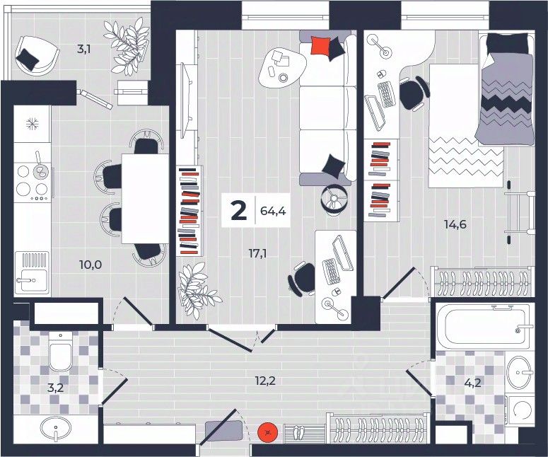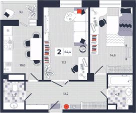 Продаётся 2-комнатная квартира в строящемся доме (Дом 30), срок сдачи: IV-кв. 2026, общей площадью 64.4 кв.м., на 8 этаже. Расположение, транспортная доступность Новый жилой комплекс "Юго-Восточный" строится в Туле, в 3,5 км от центра города. Благодаря удачным транспортным развязкам, автолюбители смогут доехать до центральных кварталов примерно за 5 10 минут, составив наиболее быстрый и удобный маршрут с учетом загруженности дорог. Проблем с мобильностью не возникнет и у пассажиров общественного транспорта. Рядом с домом расположены остановки автобусов и маршрутных такси, которые быстро довезут до любого района города. Так, чтобы добраться до центра, следует дойти пешком до остановки "Медтехника", где останавливается маршрутное такси, доезжающее до центральных кварталов всего за 7 8 минут. Инфраструктура Район, где возводится новый жилой комплекс, активно застраивается, и сеть инфраструктуры сов временем будет расширяться. Но и сейчас все, что нужно для комфортной жизни в городе, находится недалеко от жилого комплекса. В шаговой доступности расположены продуктовые магазины: "Виктория", "Овощи-фрукты", Магазин рыбы и мяса птицы, магазин мяса и колбас "У Максима", супермаркеты "Дикси", "Пятерочка", "SPAR". Неподалеку находится гипермаркет "Линия", крупный торговый центр, в котором расположены отделения банков, гипермаркет "Глобус", салон оптики, мебельный магазин "Столплит", зоомагазин "Четыре лапы" и пр. В соседнем здании находится строительный гипермаркет "Леруа Мерлен", за ним крупный магазин товаров для спорта, туризма и активного отдыха "Декатлон".Недалеко от жилого комплекса открыты кафе и рестораны: кофейня "Bonape", пиццерия "Культура", кафе "Вкуснов", кафе быстрого обслуживания "Rapido", ресторан "У фонтана" и пр.В районе есть аптеки, поликлиники, диагностические центры. В шаговой доступности от жилого комплекса расположено несколько детских садиков, в том числе, садик комбинированного вида "Алые паруса". Есть дошкольные отделения, входящие в состав образовательных центров, Центры развития ребенка. Поблизости расположены средние школы, в том числе, школа для детей с ОВЗ. Рядом с жилым комплексом находится Тульская Духовная Семинария и Суворовское училище. Надежность застройщик: достраивает объект ООО Ин-Групп.АрхитектураЖилой комплекс будет представлен 19 монолитно-кирпичными корпусами переменной этажности, выполненными в едином архитектурном стиле. При строительстве ЖК "Юго-Восточный" применяются современные материалы высокого качества, которые обеспечивают надежность домов и комфортный микроклимат в помещениях. Каждая секция оснащается современными лифтами. Помещения общего пользования отделываются экологичными материалами. Квартиры предлагаются однокомнатные (от 43,9 кв. м), двухкомнатные (от 45,8 кв. м), трехкомнатные (от 60,4 кв. м) и четырехкомнатные (от 87,2 кв. м), а также уютные студии (от 28,9 кв. м).На внутренней территории проводится комплексное благоустройство: озеленение, организация игровых площадок, мест для отдыха и зан