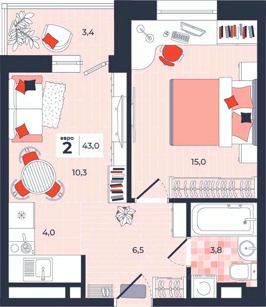 Продаётся 2-комнатная квартира в строящемся доме (Дом 30), срок сдачи: IV-кв. 2026, общей площадью 43 кв.м., на 12 этаже. Расположение, транспортная доступность Новый жилой комплекс "Юго-Восточный" строится в Туле, в 3,5 км от центра города. Благодаря удачным транспортным развязкам, автолюбители смогут доехать до центральных кварталов примерно за 5  10 минут, составив наиболее быстрый и удобный маршрут с учетом загруженности дорог. Проблем с мобильностью не возникнет и у пассажиров общественного транспорта. Рядом с домом расположены остановки автобусов и маршрутных такси, которые быстро довезут до любого района города. Так, чтобы добраться до центра, следует дойти пешком до остановки "Медтехника", где останавливается маршрутное такси, доезжающее до центральных кварталов всего за 7  8 минут. Инфраструктура Район, где возводится новый жилой комплекс, активно застраивается, и сеть инфраструктуры сов временем будет расширяться. Но и сейчас все, что нужно для комфортной жизни в городе, находится недалеко от жилого комплекса. В шаговой доступности расположены продуктовые магазины: "Виктория", "Овощи-фрукты", Магазин рыбы и мяса птицы, магазин мяса и колбас "У Максима", супермаркеты "Дикси", "Пятерочка", "SPAR". Неподалеку находится гипермаркет "Линия", крупный торговый центр, в котором расположены отделения банков, гипермаркет "Глобус", салон оптики, мебельный магазин "Столплит", зоомагазин "Четыре лапы" и пр. В соседнем здании находится строительный гипермаркет "Леруа Мерлен", за ним  крупный магазин товаров для спорта, туризма и активного отдыха "Декатлон".Недалеко от жилого комплекса открыты кафе и рестораны: кофейня "Bonape", пиццерия "Культура", кафе "Вкуснов", кафе быстрого обслуживания "Rapido", ресторан "У фонтана" и пр.В районе есть аптеки, поликлиники, диагностические центры. В шаговой доступности от жилого комплекса расположено несколько детских садиков, в том числе, садик комбинированного вида "Алые паруса". Есть дошкольные отделения, входящие в состав образовательных центров, Центры развития ребенка. Поблизости расположены средние школы, в том числе, школа для детей с ОВЗ. Рядом с жилым комплексом находится Тульская Духовная Семинария и Суворовское училище. Надежность застройщик: достраивает объект ООО Ин-Групп.АрхитектураЖилой комплекс будет представлен 19 монолитно-кирпичными корпусами переменной этажности, выполненными в едином архитектурном стиле. При строительстве ЖК "Юго-Восточный" применяются современные материалы высокого качества, которые обеспечивают надежность домов и комфортный микроклимат в помещениях. Каждая секция оснащается современными лифтами. Помещения общего пользования отделываются экологичными материалами. Квартиры предлагаются однокомнатные (от 43,9 кв. м), двухкомнатные (от 45,8 кв. м), трехкомнатные (от 60,4 кв. м) и четырехкомнатные (от 87,2 кв. м), а также уютные студии (от 28,9 кв. м).На внутренней территории проводится комплексное благоустройство: озеленение, организация игровых площадок, мест для отдыха и заня