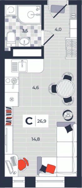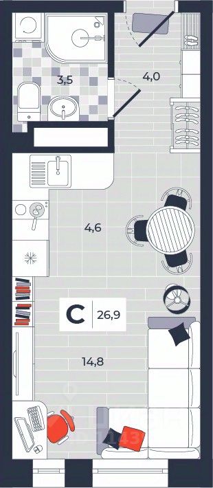 Продаётся студия в строящемся доме (Дом 30), срок сдачи: IV-кв. 2026, общей площадью 26.9 кв.м., на 7 этаже. Расположение, транспортная доступность Новый жилой комплекс "Юго-Восточный" строится в Туле, в 3,5 км от центра города. Благодаря удачным транспортным развязкам, автолюбители смогут доехать до центральных кварталов примерно за 5 10 минут, составив наиболее быстрый и удобный маршрут с учетом загруженности дорог. Проблем с мобильностью не возникнет и у пассажиров общественного транспорта. Рядом с домом расположены остановки автобусов и маршрутных такси, которые быстро довезут до любого района города. Так, чтобы добраться до центра, следует дойти пешком до остановки "Медтехника", где останавливается маршрутное такси, доезжающее до центральных кварталов всего за 7 8 минут. Инфраструктура Район, где возводится новый жилой комплекс, активно застраивается, и сеть инфраструктуры сов временем будет расширяться. Но и сейчас все, что нужно для комфортной жизни в городе, находится недалеко от жилого комплекса. В шаговой доступности расположены продуктовые магазины: "Виктория", "Овощи-фрукты", Магазин рыбы и мяса птицы, магазин мяса и колбас "У Максима", супермаркеты "Дикси", "Пятерочка", "SPAR". Неподалеку находится гипермаркет "Линия", крупный торговый центр, в котором расположены отделения банков, гипермаркет "Глобус", салон оптики, мебельный магазин "Столплит", зоомагазин "Четыре лапы" и пр. В соседнем здании находится строительный гипермаркет "Леруа Мерлен", за ним крупный магазин товаров для спорта, туризма и активного отдыха "Декатлон".Недалеко от жилого комплекса открыты кафе и рестораны: кофейня "Bonape", пиццерия "Культура", кафе "Вкуснов", кафе быстрого обслуживания "Rapido", ресторан "У фонтана" и пр.В районе есть аптеки, поликлиники, диагностические центры. В шаговой доступности от жилого комплекса расположено несколько детских садиков, в том числе, садик комбинированного вида "Алые паруса". Есть дошкольные отделения, входящие в состав образовательных центров, Центры развития ребенка. Поблизости расположены средние школы, в том числе, школа для детей с ОВЗ. Рядом с жилым комплексом находится Тульская Духовная Семинария и Суворовское училище. Надежность застройщик: достраивает объект ООО Ин-Групп.АрхитектураЖилой комплекс будет представлен 19 монолитно-кирпичными корпусами переменной этажности, выполненными в едином архитектурном стиле. При строительстве ЖК "Юго-Восточный" применяются современные материалы высокого качества, которые обеспечивают надежность домов и комфортный микроклимат в помещениях. Каждая секция оснащается современными лифтами. Помещения общего пользования отделываются экологичными материалами. Квартиры предлагаются однокомнатные (от 43,9 кв. м), двухкомнатные (от 45,8 кв. м), трехкомнатные (от 60,4 кв. м) и четырехкомнатные (от 87,2 кв. м), а также уютные студии (от 28,9 кв. м).На внутренней территории проводится комплексное благоустройство: озеленение, организация игровых площадок, мест для отдыха и занятий спортом,