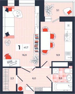 Продаётся 1-комнатная квартира в строящемся доме (Дом 30), срок сдачи: IV-кв. 2026, общей площадью 41.7 кв.м., на 6 этаже. Расположение, транспортная доступность Новый жилой комплекс "Юго-Восточный" строится в Туле, в 3,5 км от центра города. Благодаря удачным транспортным развязкам, автолюбители смогут доехать до центральных кварталов примерно за 5 10 минут, составив наиболее быстрый и удобный маршрут с учетом загруженности дорог. Проблем с мобильностью не возникнет и у пассажиров общественного транспорта. Рядом с домом расположены остановки автобусов и маршрутных такси, которые быстро довезут до любого района города. Так, чтобы добраться до центра, следует дойти пешком до остановки "Медтехника", где останавливается маршрутное такси, доезжающее до центральных кварталов всего за 7 8 минут. Инфраструктура Район, где возводится новый жилой комплекс, активно застраивается, и сеть инфраструктуры сов временем будет расширяться. Но и сейчас все, что нужно для комфортной жизни в городе, находится недалеко от жилого комплекса. В шаговой доступности расположены продуктовые магазины: "Виктория", "Овощи-фрукты", Магазин рыбы и мяса птицы, магазин мяса и колбас "У Максима", супермаркеты "Дикси", "Пятерочка", "SPAR". Неподалеку находится гипермаркет "Линия", крупный торговый центр, в котором расположены отделения банков, гипермаркет "Глобус", салон оптики, мебельный магазин "Столплит", зоомагазин "Четыре лапы" и пр. В соседнем здании находится строительный гипермаркет "Леруа Мерлен", за ним крупный магазин товаров для спорта, туризма и активного отдыха "Декатлон".Недалеко от жилого комплекса открыты кафе и рестораны: кофейня "Bonape", пиццерия "Культура", кафе "Вкуснов", кафе быстрого обслуживания "Rapido", ресторан "У фонтана" и пр.В районе есть аптеки, поликлиники, диагностические центры. В шаговой доступности от жилого комплекса расположено несколько детских садиков, в том числе, садик комбинированного вида "Алые паруса". Есть дошкольные отделения, входящие в состав образовательных центров, Центры развития ребенка. Поблизости расположены средние школы, в том числе, школа для детей с ОВЗ. Рядом с жилым комплексом находится Тульская Духовная Семинария и Суворовское училище. Надежность застройщик: достраивает объект ООО Ин-Групп.АрхитектураЖилой комплекс будет представлен 19 монолитно-кирпичными корпусами переменной этажности, выполненными в едином архитектурном стиле. При строительстве ЖК "Юго-Восточный" применяются современные материалы высокого качества, которые обеспечивают надежность домов и комфортный микроклимат в помещениях. Каждая секция оснащается современными лифтами. Помещения общего пользования отделываются экологичными материалами. Квартиры предлагаются однокомнатные (от 43,9 кв. м), двухкомнатные (от 45,8 кв. м), трехкомнатные (от 60,4 кв. м) и четырехкомнатные (от 87,2 кв. м), а также уютные студии (от 28,9 кв. м).На внутренней территории проводится комплексное благоустройство: озеленение, организация игровых площадок, мест для отдыха и зан